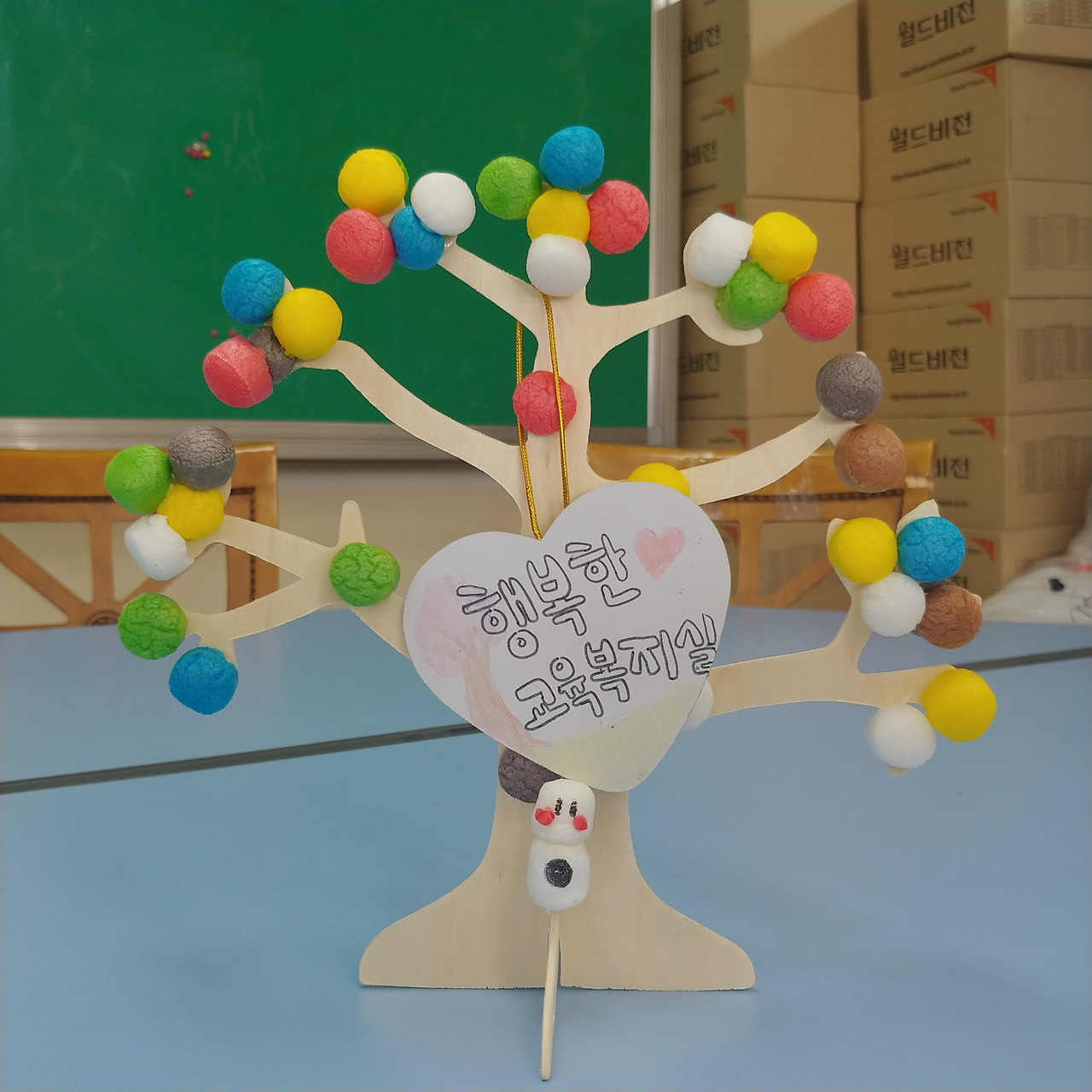 주섬주섬 챙겨가던 학생은 3교시가 지나 교육복지실에 무언가를 들고 왔다. 학생이 들고 온 것은... 미술치료를 하기 위해 구입했던 재료를 가지고 만든 투박하게 생긴 나무 모양의 안내판이었다. 손에 목공풀을 묻혀가며 만들었다며 작은 목소리로 속삭이듯 건네주었다. 받아 든 나에게 이내 무심하게 말했다.