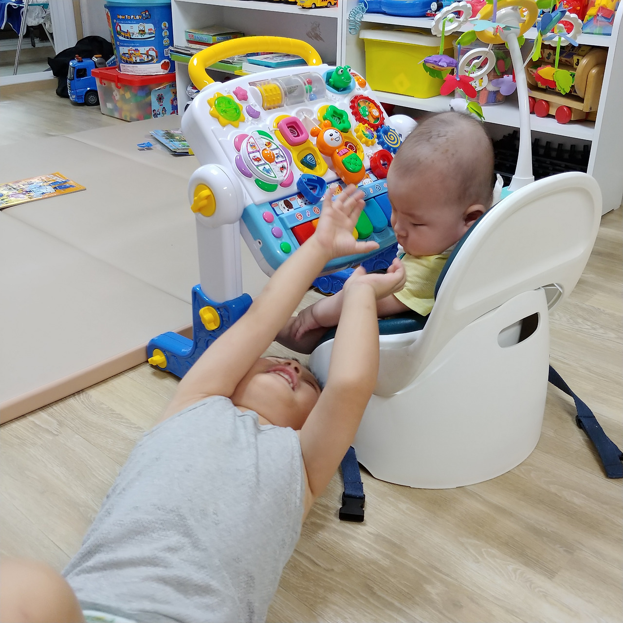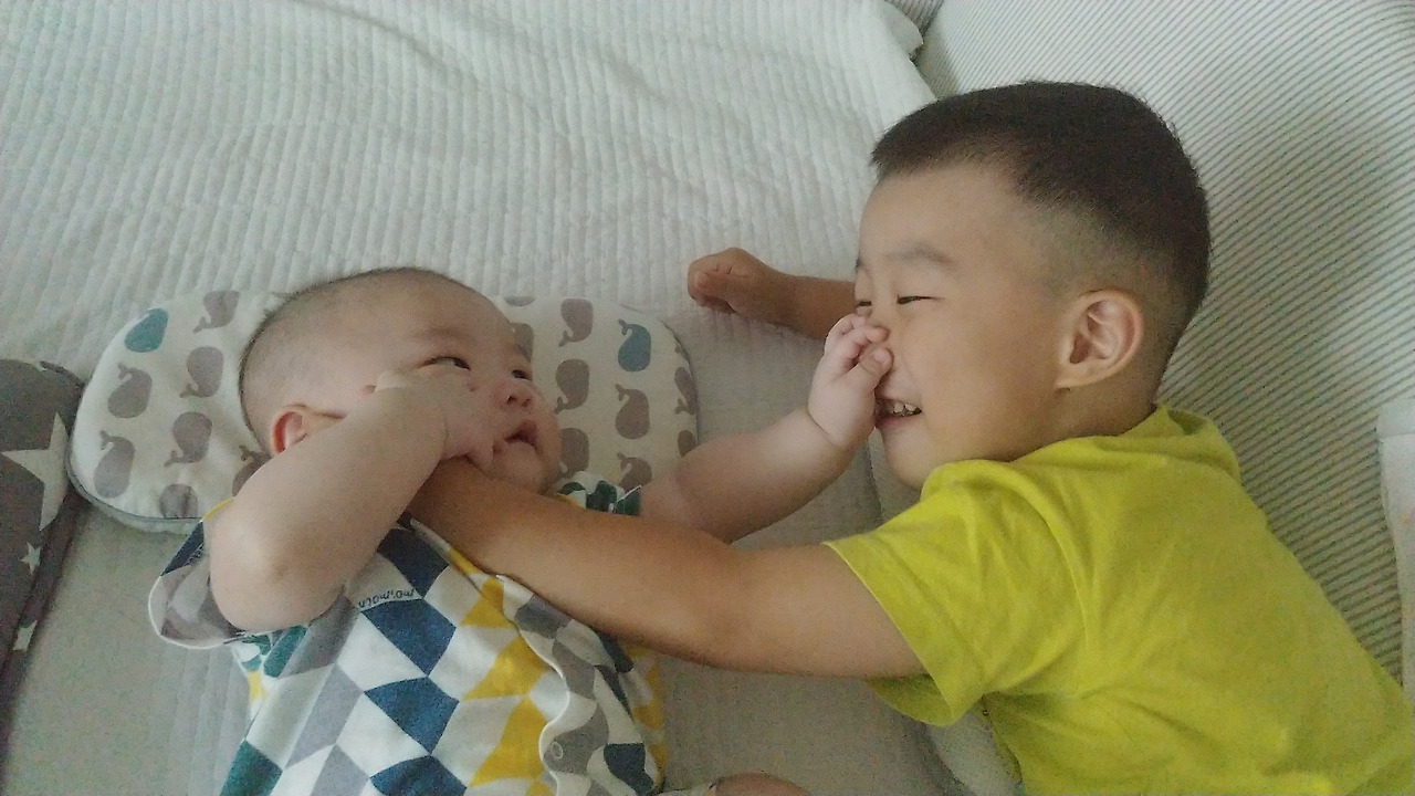 어느덧 5개월이 지났다. 둘째도 컸지만 첫째도 놀라울 만큼 폭풍 성장했다. 첫째는 동생 도우미를 자처한다. 아내가 "유호야 손수건 가져다 줄래? 기저귀 가져다 줄래?"라고 말하면 잘도 찾아 가져다준다. 배고파서 보채고 있는 동생을 우스꽝스러운 말과 행동으로 달래준다. 동생을 돌보느라 놀아주지 못하는 상황에도 기다릴 줄 안다. 혼자 노는 것을 지루해하거나 짜증 내지 않는다. 아침에 깨서 동생부터 찾는 아들, 동생 옆에 누워 눈 맞춤을 하는 첫째를 보고 있으면 언제 이렇게 컸을까 하는 생각에 뭉클하다. 시간이 훌쩍 지나감을 느낀다. 어느덧 아들은 동생을 잘 챙기는 의젓한 형이 되었다.