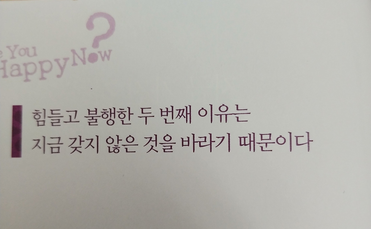 "가진 것을 더 원하라." 가진 것에 만족하라는 말과 같다. 현재 가지고 있는 것에 대한 소중함, 가치를 깨달았을 때 비로소 행복하다. 나를 비롯한 가까운 주변을 살피는 일이다. 가족, 친구, 일터, 이미 가지고 있는 것들에 대한 감사와 만족이 진정으로 행복한 삶인 것 같다.