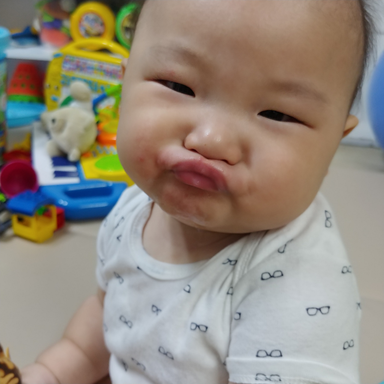뒤집기에 성공하더니 목을 가눴다. 앉아 있는 시간도 길어졌다. 처음 몇 개월은 누워만 있었다. 그때는 눈 맞춤도 되지 않았다. 멀뚱멀뚱 천장만 바라봤다. 이름을 부르면 소리가 나는 방향으로 반응하는 것이 전부였다. 아이 성장은 어제 다르고 오늘 다르고 내일 다르다. 아들이 어제 없었던 반응을 할 때면 기적을 본 것처럼 신기하고 놀라웠다. 물건을 손에 쥐기만 했던 아들은 이제 제법 자기가 원하는 것을 잡을 수 있다. 눈과 손의 협응이 나아졌다. 끙끙 힘겹게 기어가 결국 잡고 마는 아들. 손과 발을 쓰기 시작했다. 손과 발로 물건을 만지며 탐색하기를 좋아한다. 입으로 빠는 것을 말리는 것 덤이다. 눈 맞춤을 잘한다. "지호야, 지호야" 이름을 부르면 소리 나는 쪽으로 고개를 획 하고 돌린다. 눈 맞춤하면 그제야 "꺄악" 소리 내며 웃는다. 어찌나 잘 웃는지 아들의 웃음소리와 미소는 마음을 살살 녹인다. 이가 나기 시작하면서 침을 많이 흘린다. 이제 언어발달을 위한 준비를 하는지 몰라도 "부르르" 입술을 떨며 소리 낸다. 첫째도 둘째도 옹알이로 시끄러운 것은 남달랐다.