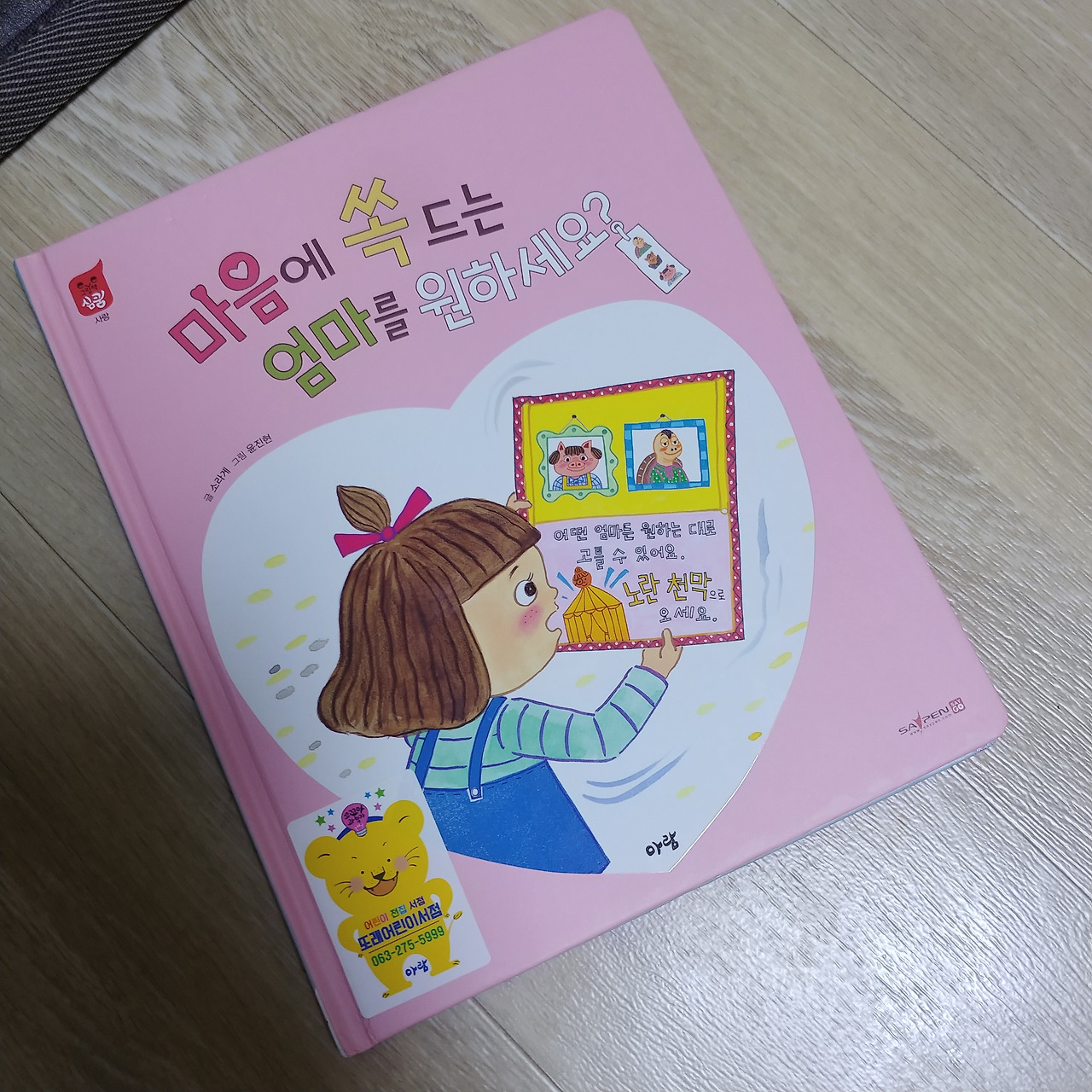 어느 날 퇴근길, 아들을 데리러 어린이집에 갔다. 아들이 신발을 신는 동안 선생님과 그날에 있었던 일에 대해 이야기 나눈다. 컨디션이 어땠는지, 어떤 활동을 했는지, 대변은 잘 봤는지. 등등. 하루 동안 있었던 이야기를 들으면 아들의 어린이집 생활이 한눈에 그려진다. 그날은 공연 관람을 한 날이었다. 선생님은 공연과 같은 내용의 책이라며 한 권의 책을 건넸다. [마음에 쏙 드는 엄마를 원하세요?] 무슨 내용일까. 어쨌든 아들에게 공연이 어땠는지 물어볼 겸 책을 읽어줄 생각이었다.