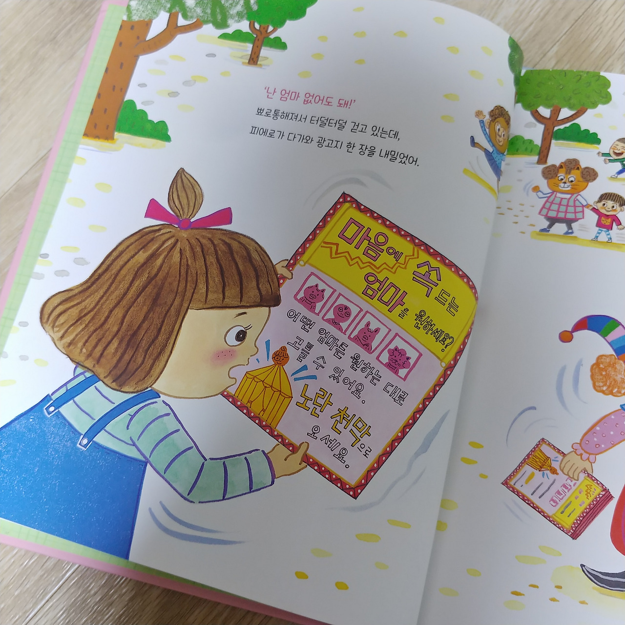 내용은 한 아이가 마음에 드는 엄마를 여러 번 바꿔보지만 결국 진짜 엄마가 제일 좋다는 교훈? 이 담긴 책이었다. 아이는 엄마의 잔소리가 듣기 싫다. 잔소리하는 엄마에 대한 불평, 불만이 가득했고 엄마가 없었으면 하는 생각을 했다. 그때 마침 길을 가다가 삐애로 아저씨가 어떤 광고지를 한 장을 건네는데...