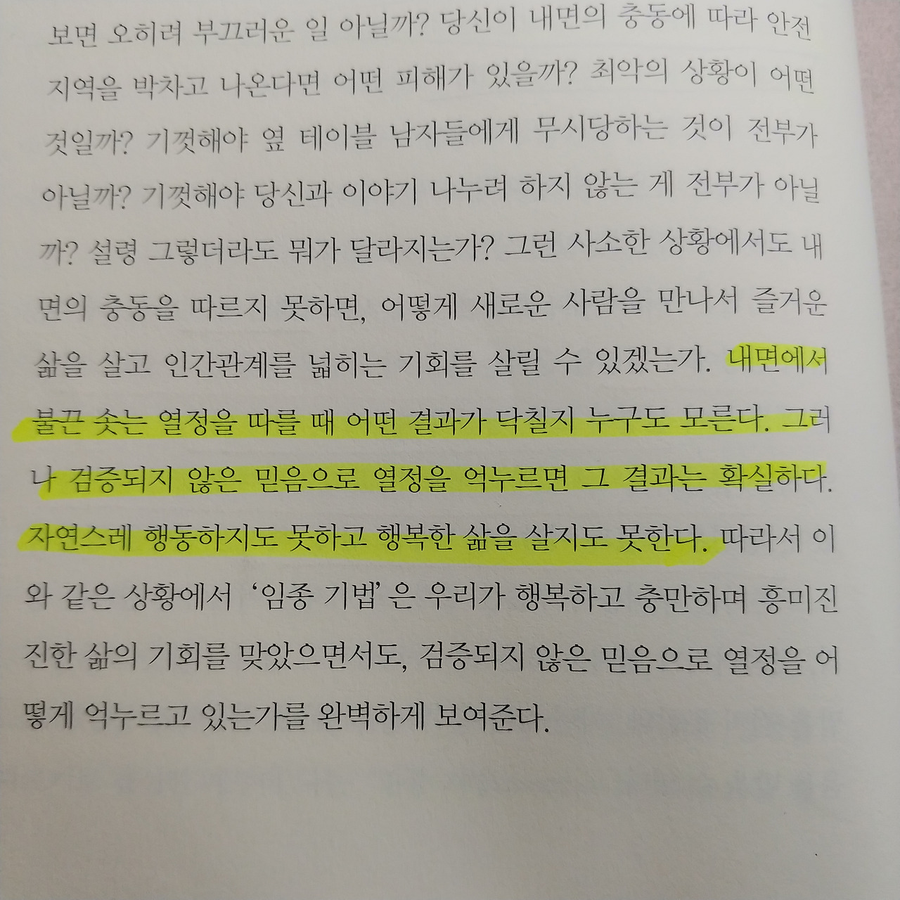 열정, 가슴 뛰는 일을 하지 않는다고 문제 될 건 없다. 괜찮다. 그냥 하루하루 버티며 살아내는 것도 중요하다. 현재에 충실하는 것, 긍정적 의미 부여하는 일이 현재에 초점 두는 삶이지 않을까 생각한다.