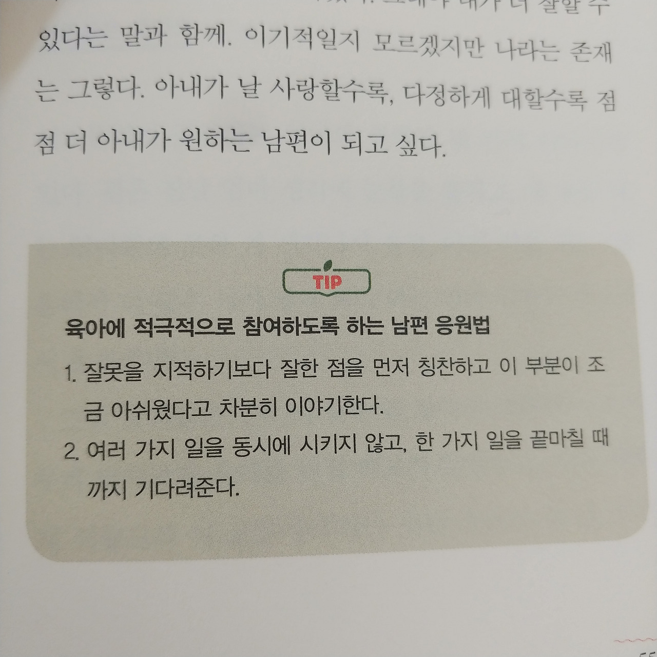 이 책은 육아에 지친 아내가 위로받을 수 있는 책이며 '나도 일한다'며 육아를 당연시 여기고 핀잔주는 남편, 가족 기여에 소극적인 남편에게 선물해주면 좋을 책 같다.(아내를 이해할 수 있는 책이었다)
