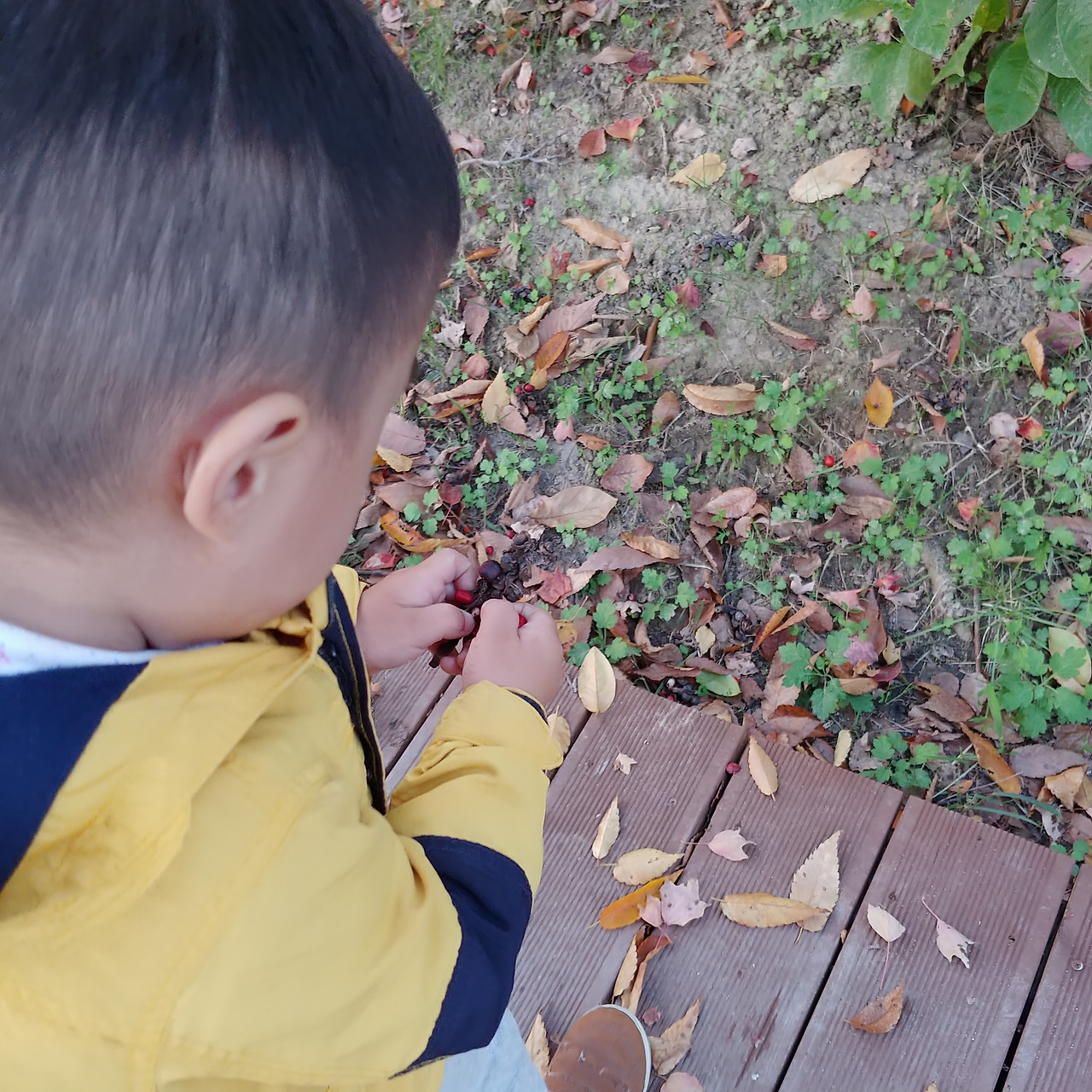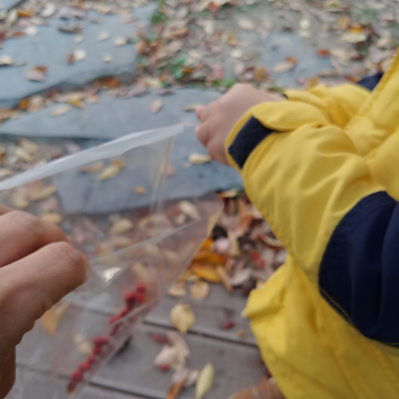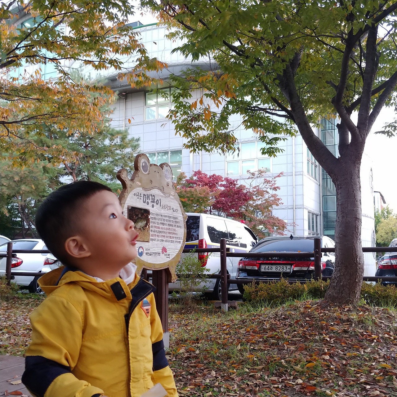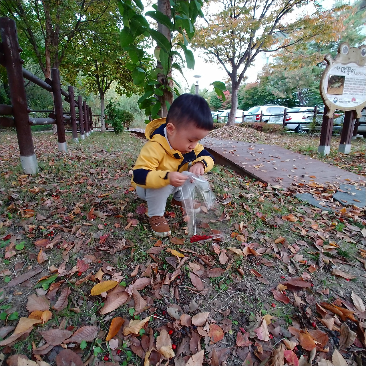 낙엽도 보여주고, 수북이 쌓인 낙엽 위를 깡총깡총 뛰어보기도 했다. 아들은 낙엽 밟은 바스락거리는 소리에 신나 했다. 알록달록 노란색, 붉은색, 초록색 잎을 모아보고 던져봤다. 고사리 같은 손으로 낙엽 사이 들춰가며 떨어진 열매도 주었다.