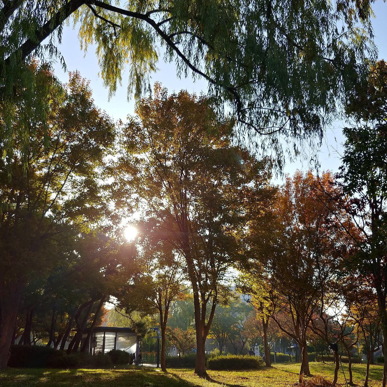 출근길, 아침 햇살이 눈부셨다. 따뜻한 눈부심이었다. 평소엔 그냥 지나쳤던 공원이지만 나무 사이사이 기지개 켜는 가을 햇살이 나의 발걸음을 멈춰 세운다.