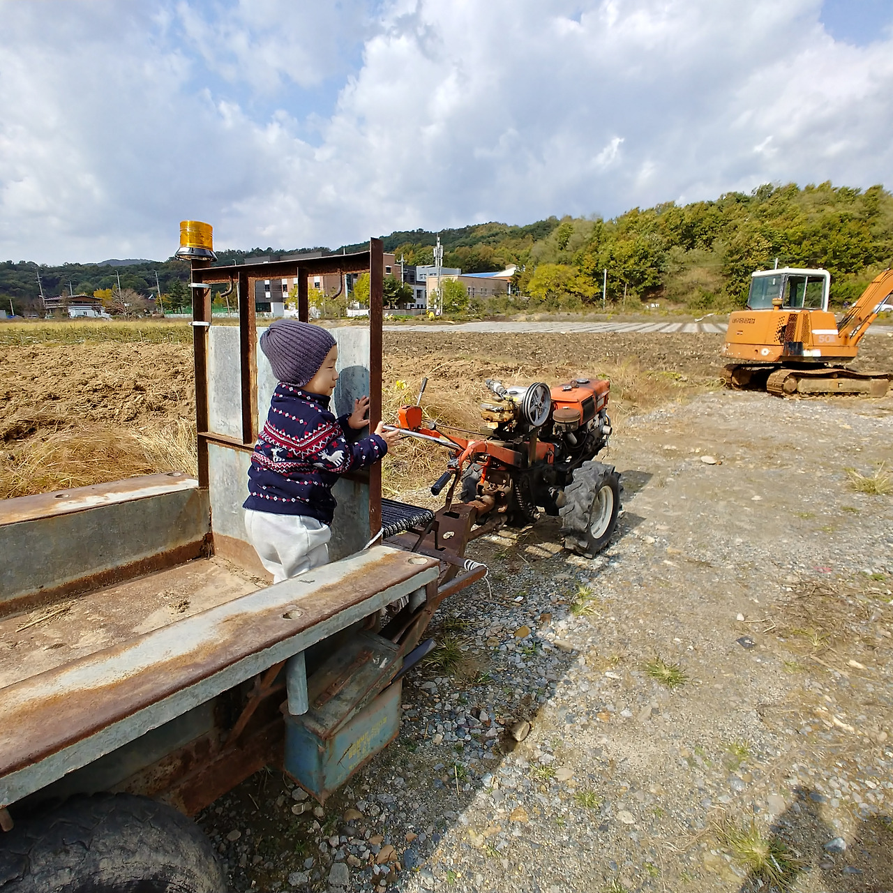 유호가 하는 말. 시골에 경운기 있어. 달달달 하며 입으로 소리 내며 양손을 마치 운전하듯이 폼을 잡고 흉내를 낸다. 모습은 정말 흔들리는 경운기에 올라탄 모습이다. 오늘 이 흉내로 장모님과 장인어른께서 엄청 웃으셨다. 유호야~ 너 개그맨 해볼 생각 없니? 아빠가 팍팍 밀어 줄게.
