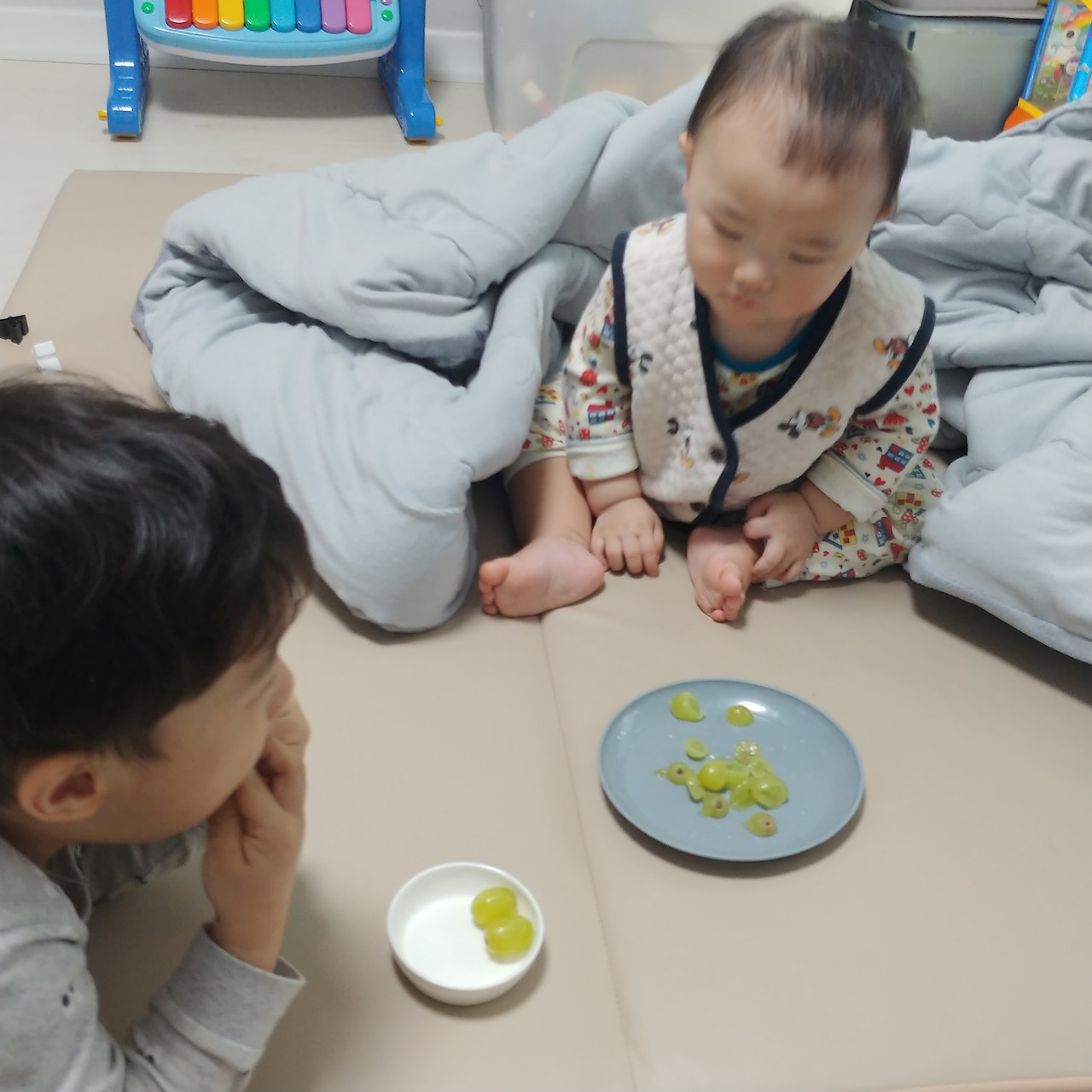 이제 갓 돌 지난 둘째 이야기다. 유난히 형을 좋아하는 둘째. 형에게 엉겨 붙어있는 것을 좋아한다. 기대고, 안기고, 뽀뽀하는. 형이 놀고 있으면 어떻게든 끼고 싶어 하는 둘째다. 공감 능력이라기 보단 애교 같은 행동이겠지만 마치 형을 위로하는 듯한 행동을 한다. 첫째가 울고 있으면 앉은 채로 기어와 형에게 기댄다. 여의찮으면 형의 등이나 어깨를 토닥토닥한다. 첫째가 울음을 안 그치면 더 크게 우는 둘째. 그런 동생을 보고 깔깔거리며 웃어넘기는 첫째, 사실 둘째 덕을 톡톡히 보고 있다.