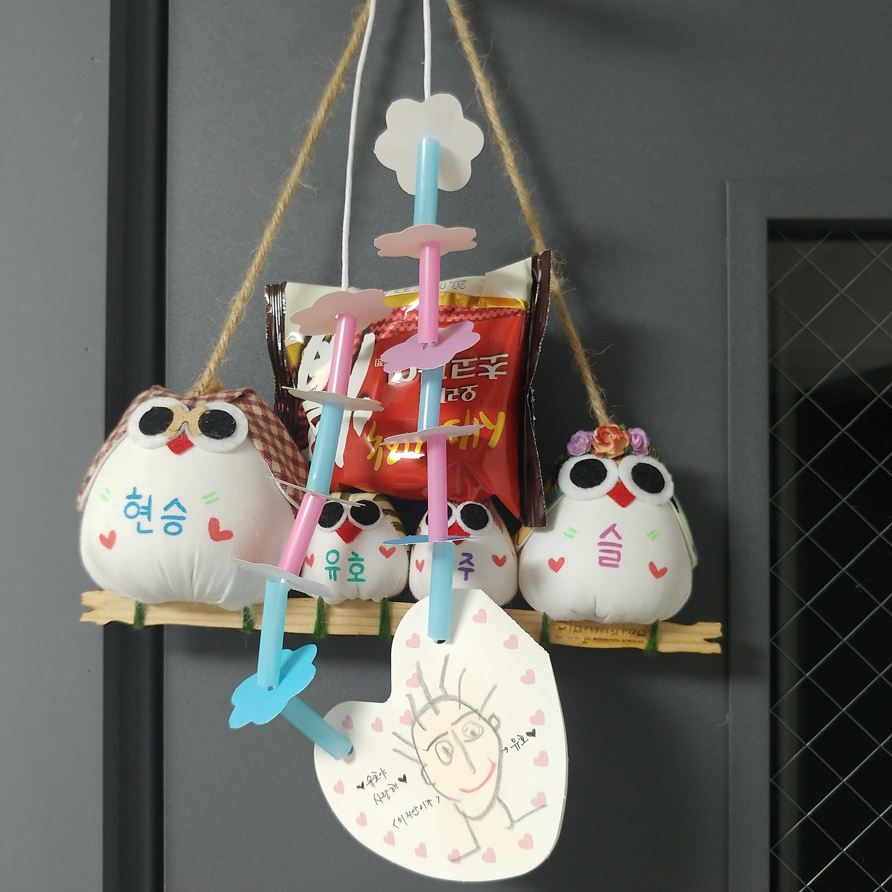“엄마에게 하고 싶은 말은 뭐야?” 아들에게 엄마한테 하고 싶은 말이 무엇인지 물었다. 색연필 쥔 아들 손을 잡고 아들이 말하는 대로 편지를 썼다. “엄마는 치마 입은 모습이 이뻐요.” “다음에 치마를 사줄게요.”라고 쓰고 아들과 함께 쓴 편지를 하트 모양으로 접었다. 그냥 주기 뭔가 심심해서 두꺼비집에 편지를 숨겨놨다. 그리고 현관문이 열리면 초코파이가 떨어지라고 위태롭게 걸쳐놨다. 외출하고 돌아온 아내 머리 위로 우두둑 떨어졌다. 이벤트 성공.