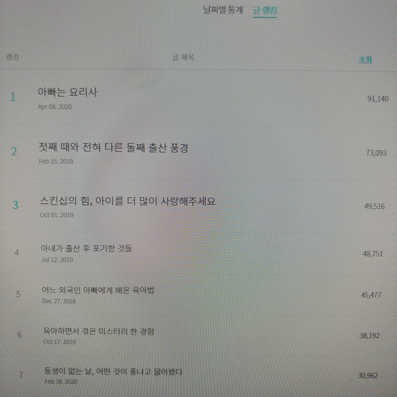 나의 관심사는 글 랭킹에 있었다. 언제쯤 글의 순위가 바뀔까 궁금했다. 몇 분 단위로 조회수가 돌파했다는 알림 문자를 받은 적은 있지만 랭킹 10위 안의 글들은 요지부동이었다. "어! 이거 심상치 않다."가도 금세 조회수 상승세가 꺾이고 말았다.