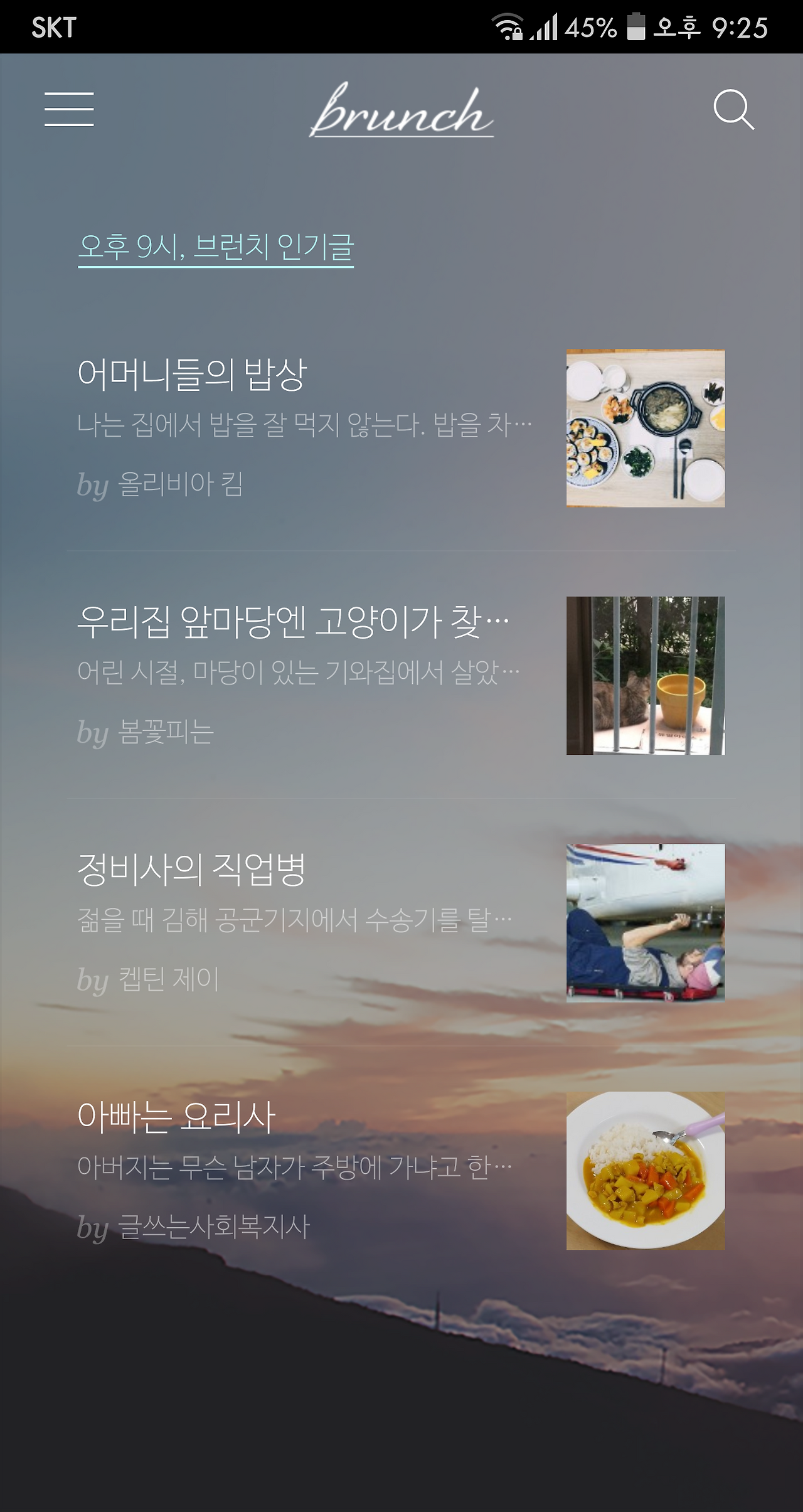 어제 [아빠는 요리사]라는 글을 발행을 하고 마음이 들썩들썩했다. 습관대로 글을 발행하고 얼마 지나지 않아 통계를 클릭해봤다. 순간 몇백 명의 조회수가 올라갔다. 오랜만에 메인 노출, 싫지만은 않았다.