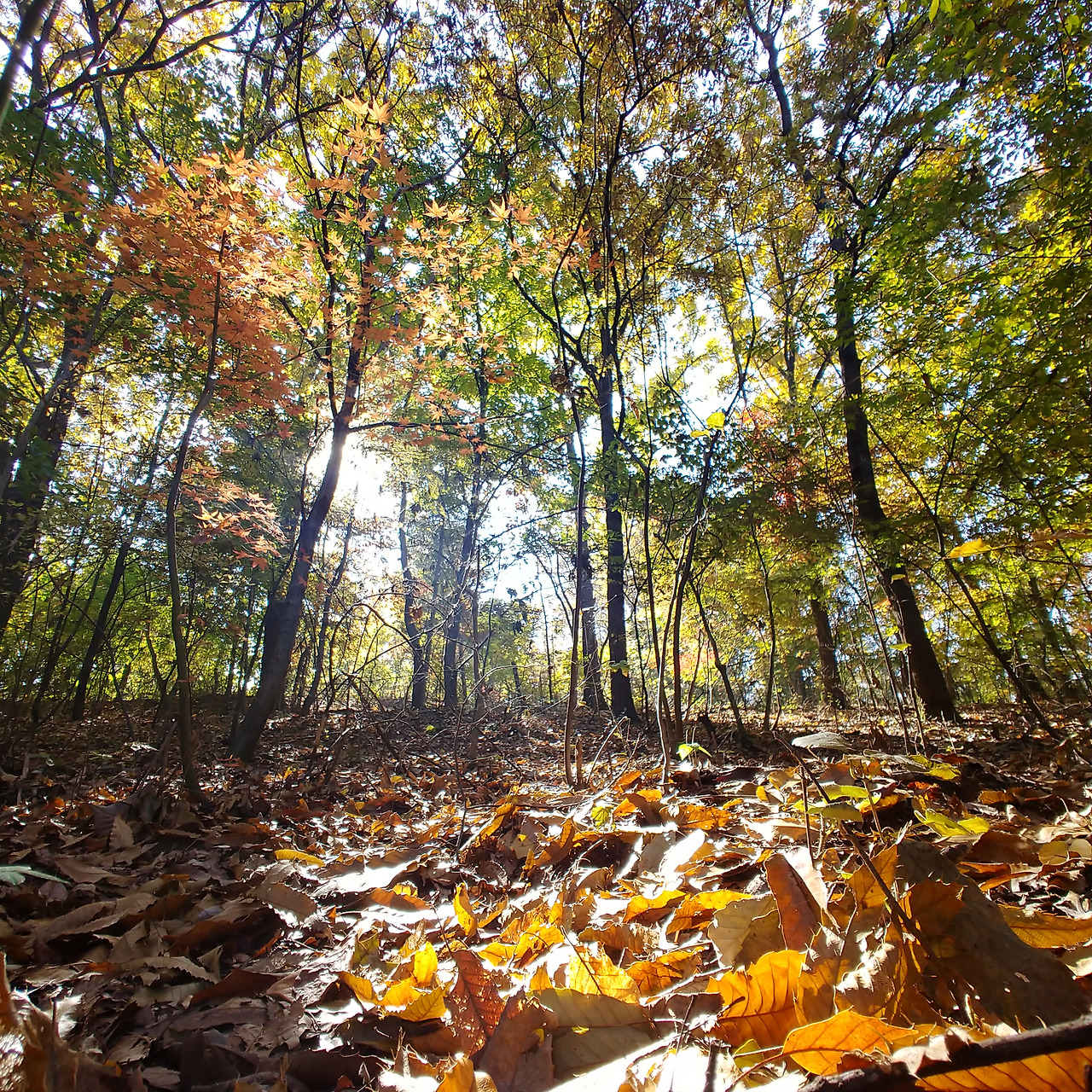 벌써 가을 끝자락이다. 많은 잎들이 바닥에 널브러져 있었다. 앙상한 가지에 달랑달랑 힘겹게 매달려있는 잎도 살랑살랑 산들바람에 우수수 떨어진다. 가지에 붙은 잎들도 색이 바래고 바싹 말라 간다. 지금이 지나면 가을도 끝날 것 같다. 잎들이 햇살에 기대어 마지막 빛깔을 내고 있었다.