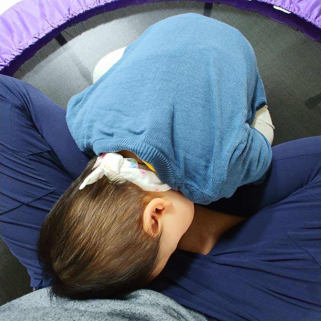 아들과 트램펄린 위에 마주 앉았다. 엉덩이에 힘을 살짝 주고 위아래로 흔들었다. 위아래로 흔들릴 때마다 까르르 웃는 둘째. 처음 타보는 트램펄린, 신세계다. 한참을 놀고 마주 앉은 채 둘째 엉덩이를 토닥거렸다. 둘째는 멍하니 한 곳을 바라봤다. 스르르 눈이 감기는 것 같더니 얼마 지나지 않아 앉은 채로 다리에 얼굴을 파묻었다. 고개를 떨군 아들은 그대로 잠들었다.