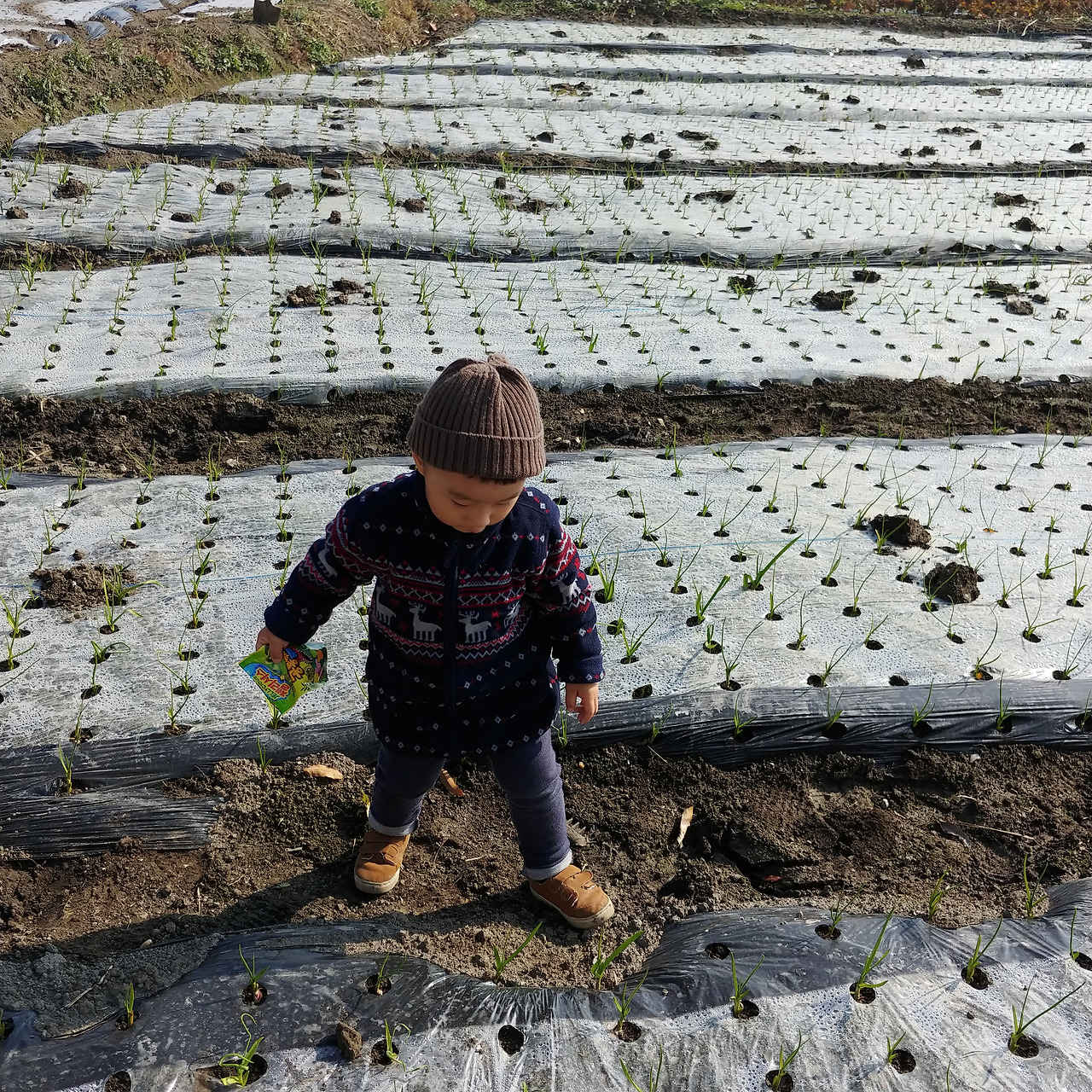 저번 주에 마늘을 심었는데 한주 사이에 싹이 돋았다. 오전은 구멍에 제대로 나지 못한 마늘 순을 손가락을 넣어 휘익 휘익 돌려서 빼줬다.