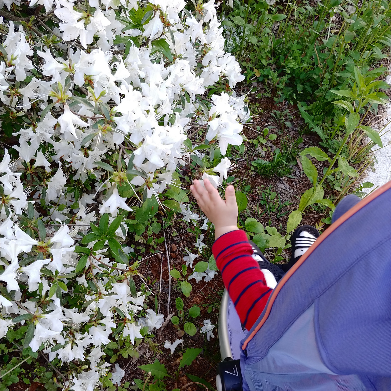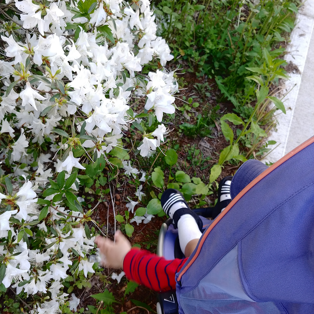 살랑살랑 부는 산들바람에 철쭉꽃 향기가 코 끝에 닿아 퍼졌다. 진한 철쭉꽃 향기를 아들도 맡아봤으면 좋겠다는 생각에 꽃 가까이 유모차를 대줬다. 아들은 조그만 손으로 꽃 한번, 잎 한번 번갈아가며 조물조물 만졌다.