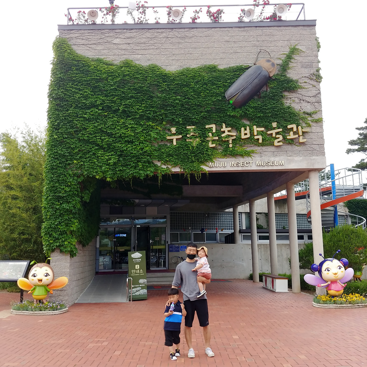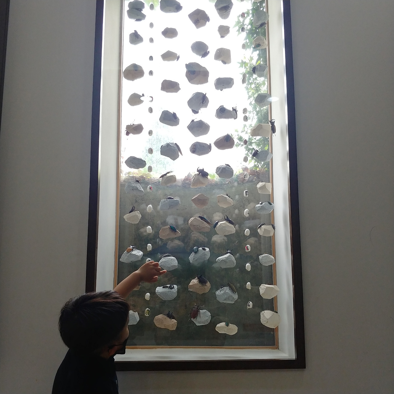 무주 곤충 박물관 관람 입구 창문에 만들어진 조형물. 여러 종류의 곤충들이 옹기종기 있었다. 아들은 사슴벌레와 장수풍뎅이를 보면서 좋아했다. 아들은 네 살 무렵 벅스 봇이라는 곤충 로봇 만화를 보게 됐고 그때부터 곤충에 관심을 가졌다. 진짜 장수풍뎅이를 키우자는 아들, 나이가 예닐곱이 되면 집에서 곤충, 파충류를 키우지 않을까. 아내는 기겁할 텐데 벌써부터 걱정이네.