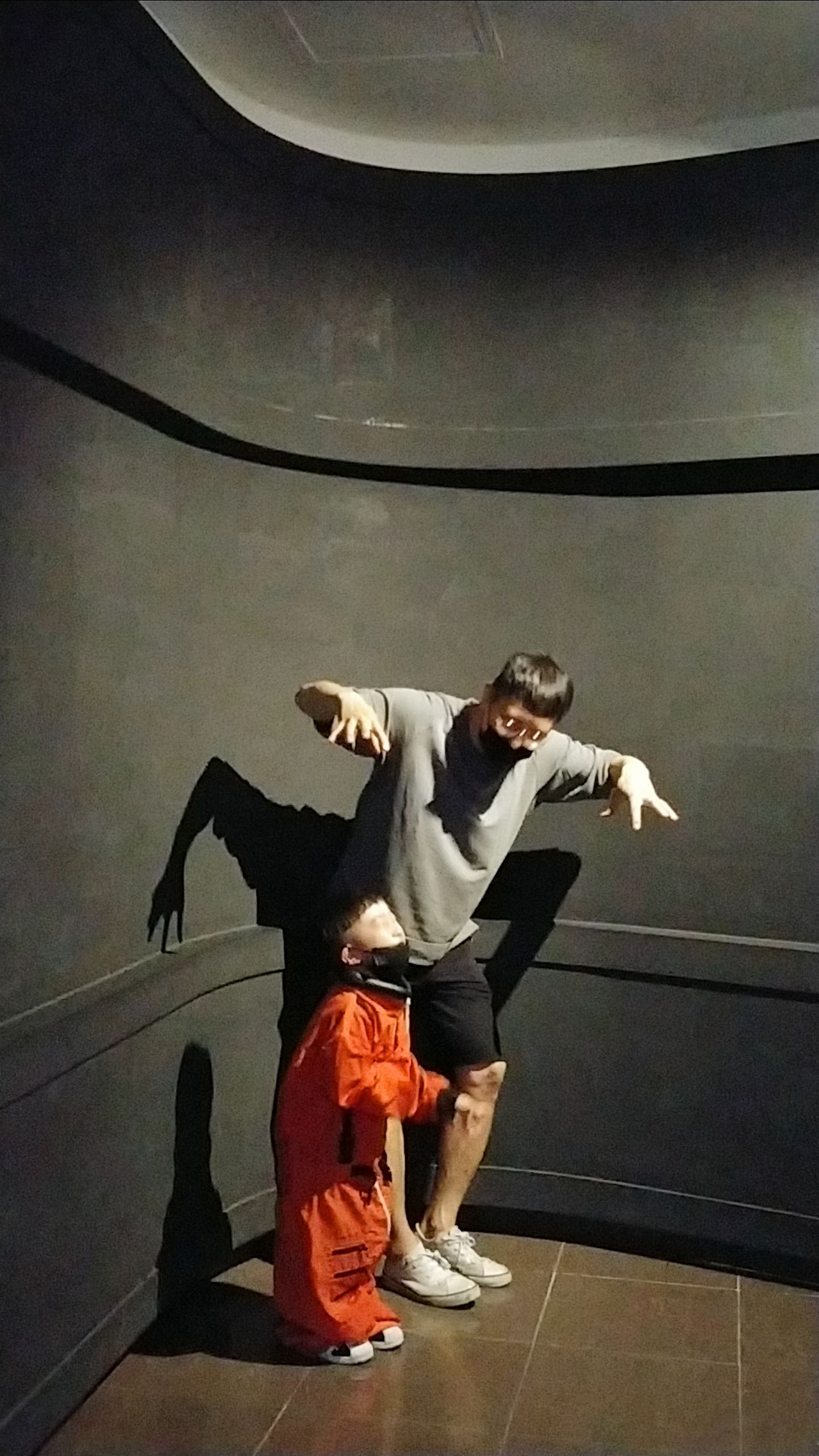 아들과 아폴로 11호에 타다. 빼꼼 얼굴만 내밀면 사진이 그럴싸했다. 아내가 소름 돋는다며 자기가 찍은 사진을 보고 소스라치게 놀랐다. 지금 봐도 진짜 같다.