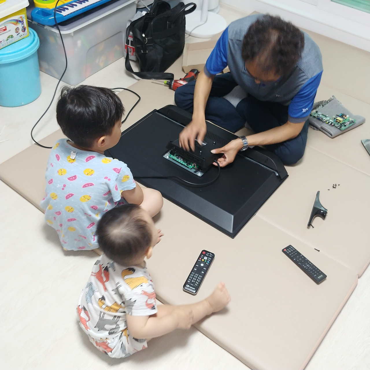 tv를 고치는 것이 신기한 거니, tv 볼 생각에 들뜬 거니장모님 tv도 고장 났다. 다행히 구입한 지 1년이 되지 않아 무상으로 고칠 수 있었다. 장모님은 그보다 큰 tv를 새로 살 거니까 고쳐서 쓰라고 했다. 고민했다. 이걸 받을 것인가 말 것인가.