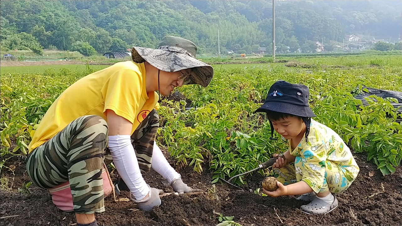 아들과 감자를 캐서 즐거웠고 감자가 식탁에 오르기까지의 과정을 알려줘서 의미 있었다.