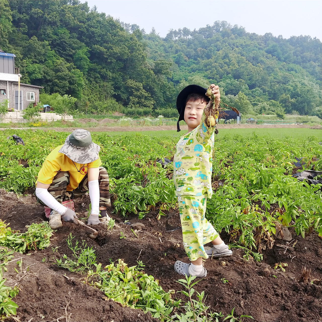 감자 캐기 일주일 전, 아들에게 다음 주에 고산 가서 감자 캐자고 미리 알려줬다. 아들은 감자 캐는 것이 기대됐던 모양이다. 아들이 며칠 전부터 유치원에서 감자를 캔다며 노래를 불렀다고 했다.