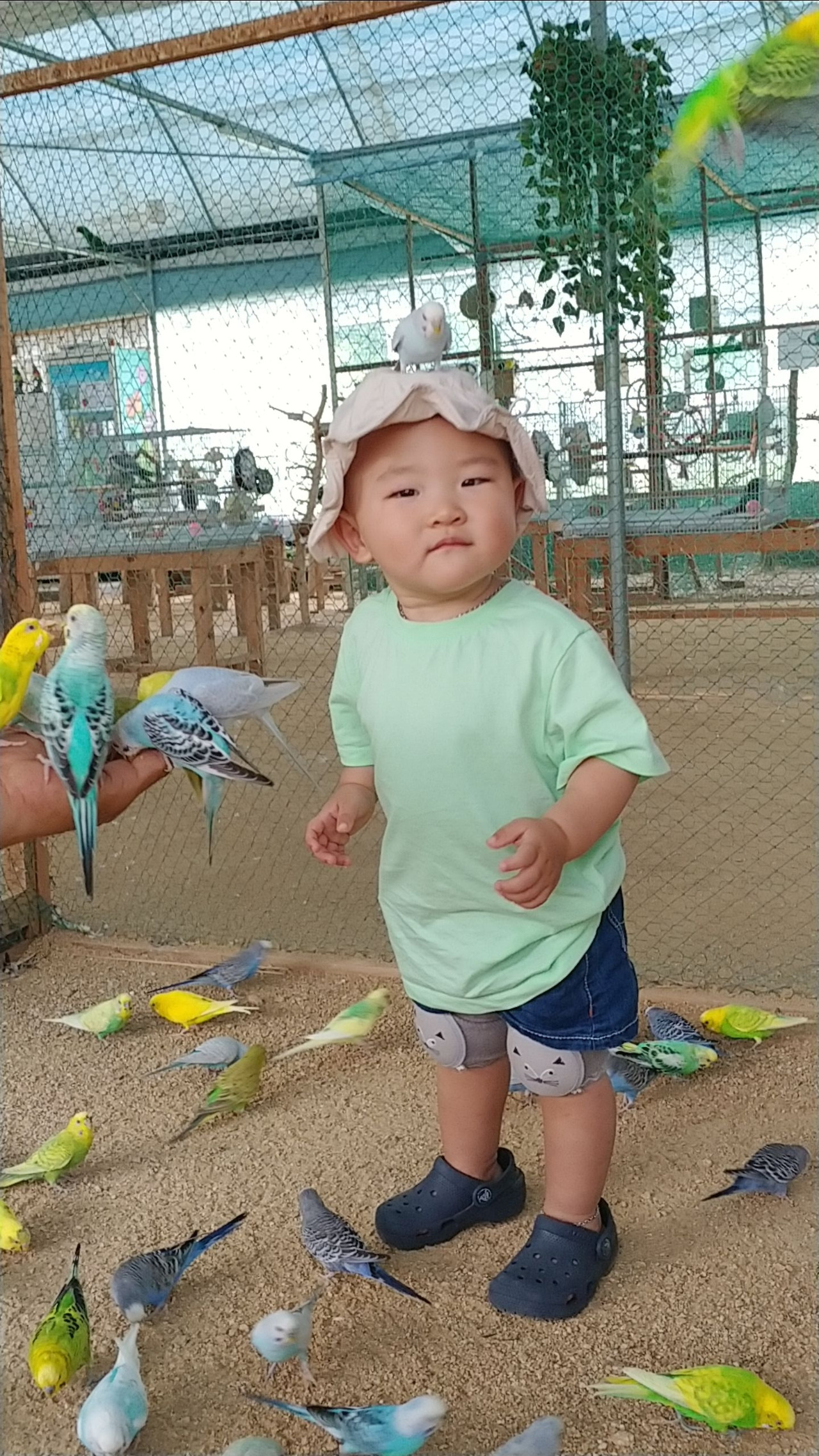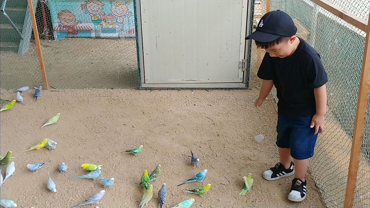 갖가지 앵무새와 새장 옆에는 토끼, 닭, 공작 우리도 있었다. 앵무새에게 먹이 주는 체험을 좋아했던 둘째와 달리 첫째는 앵무새가 내려앉는 것이 무서웠는지 겁에 질린 표정으로 먹이 주는 것을 거부했다.