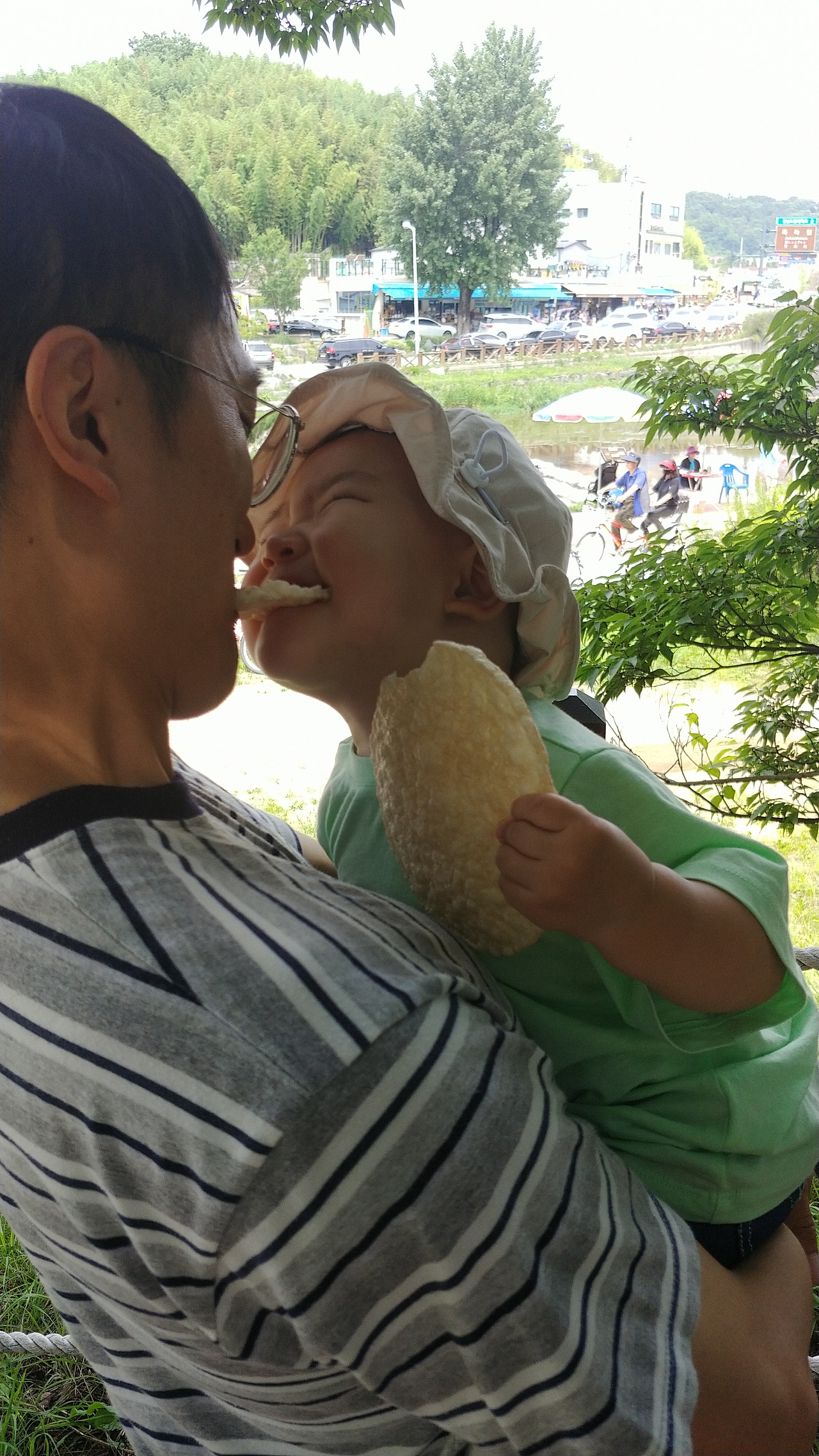 점심을 먹고 공원에서 산책하며 입가심으로 뻥튀기와 아이스크림을 물고 걸었다.