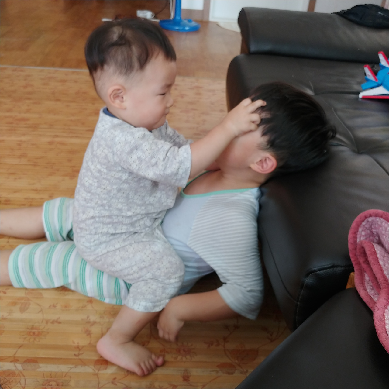 삼사일 tv 없이 버티다가 결국 출근 준비를 하는 20분 동안 tv를 틀어주고 말았다. tv를 보는 순간만 평화로울뿐 tv를 끄면 첫째든 둘째든 칭얼거렸고 보채기까지 했다. 심지어 19개월 둘째는 tv를 끄면 "티 티 티" tv에 손가락질하며 켜달라고 울먹였다. 어떻게 찾았는지 tv 서랍장 안에 있는 리모컨을 가져와서 "뽀 뽀 뽀" 뽀로로를 틀어달라고 조르기까지 하는데 아침마다 반나절 에너지를 쏟아붓고 출근해야 했다.