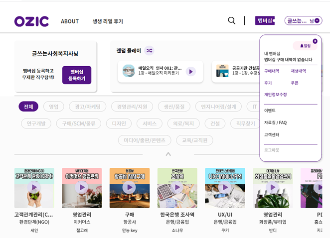 오직(ozic)이라는 오디오 플랫폼은 현직자가 멘토가 되어 취준생들에게 직무를 소개하고 면접 준비와 자기소개서 작성 방법을 알려주는 등 직무에 관한 노하우, 최근 이슈 같은 정보를 오디오로 제공하는 플랫폼이다.