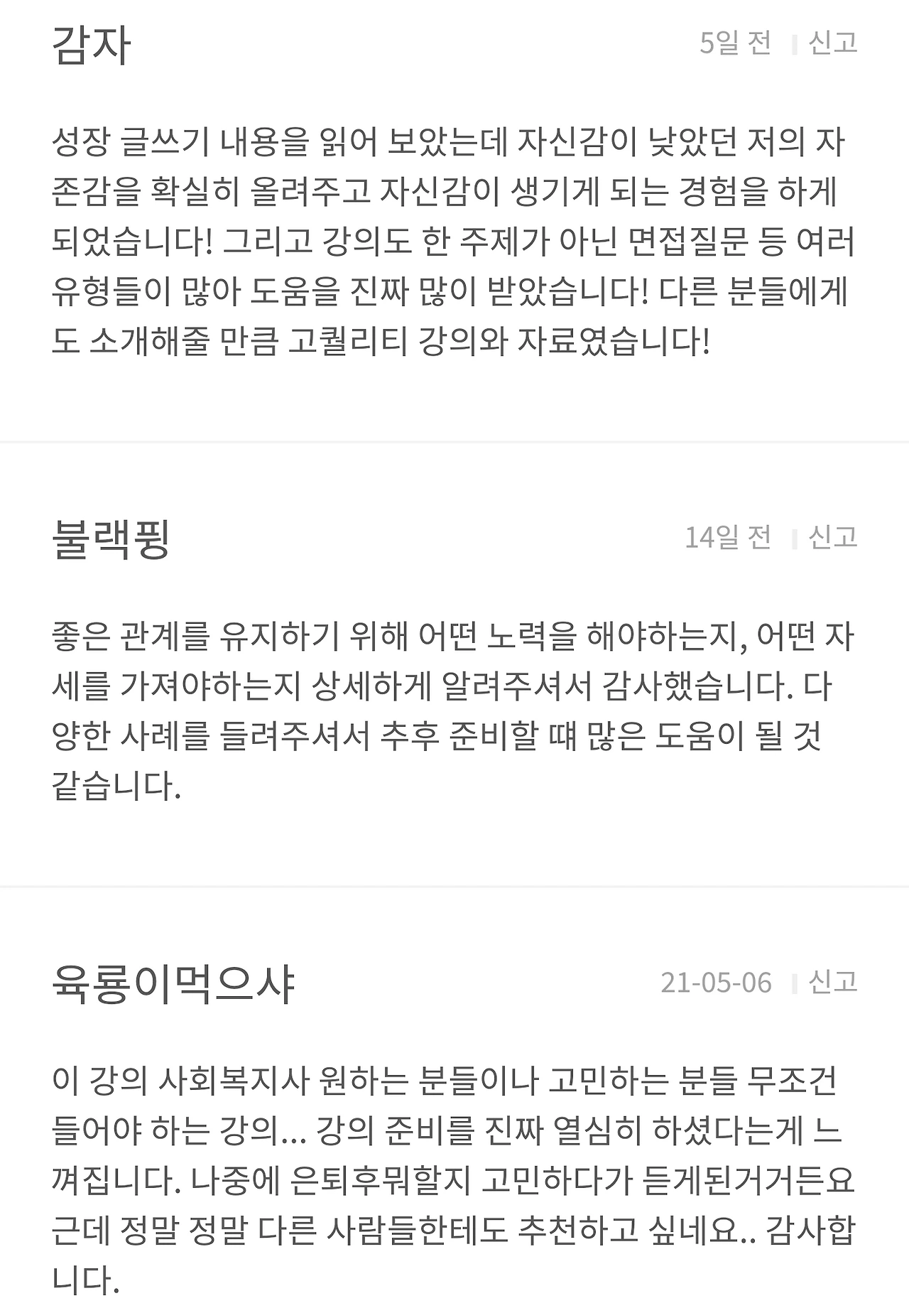 쿠폰으로 강의 구입 후, 강의를 듣고 직접 강의 후기를 남겨주시는 분에게 사회복지와 상담 관련, 사례관리, 프로포절, 프로그램 기획 같은 주제로 컨설팅해드립니다.