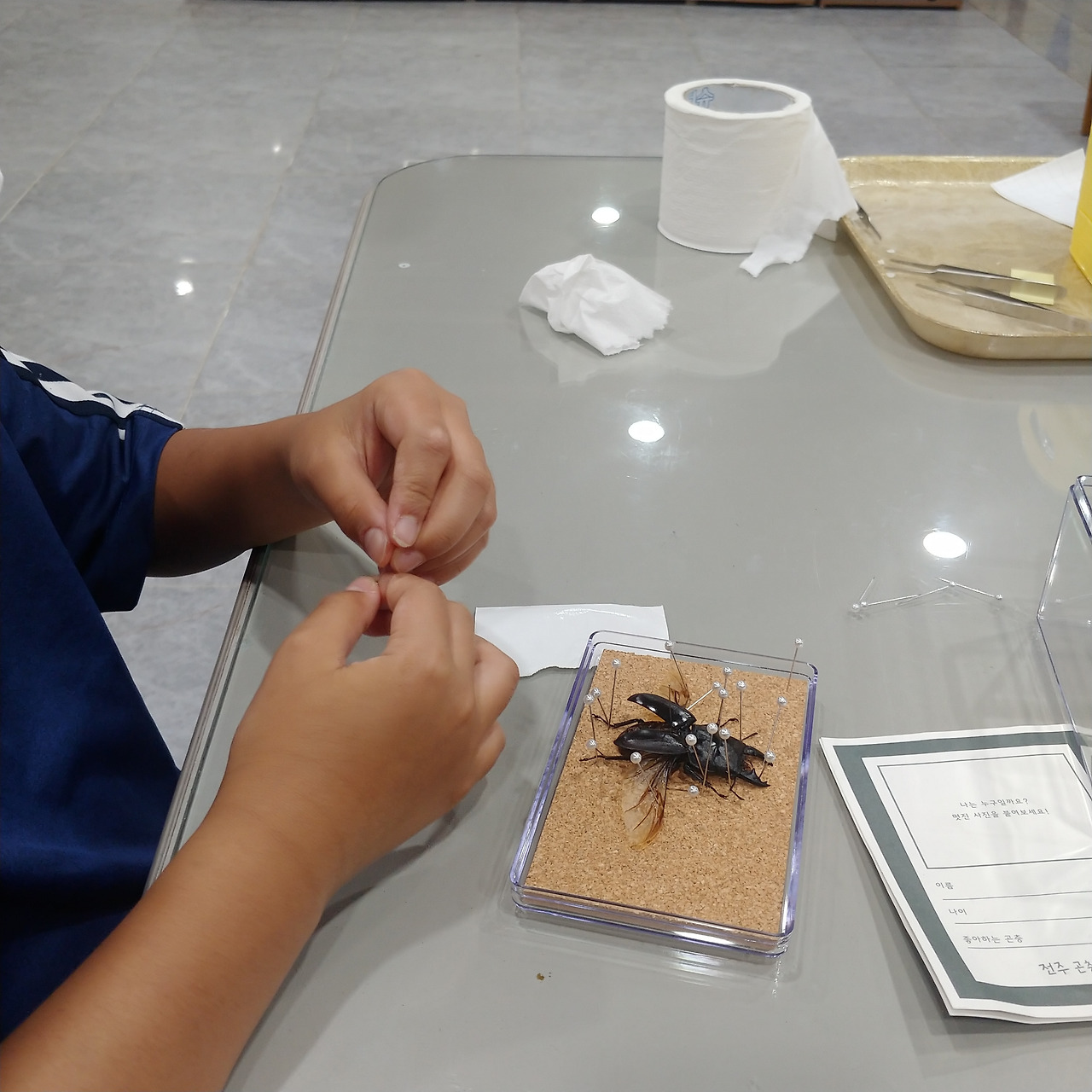 곤충 캠퍼스에 가서 표본으로 전시된 곤충에 대해 설명을 들었다. 1시간 정도 관람을 하고 사슴벌레 표본을 만들었다. 아이들은 사슴벌레와 장수풍뎅이가 알에서 성충이 되는 과정을 직접 보며 신기해했다. 호기심을 보이며 활동하는 내내 즐거워했다. 꿈틀거리는 애벌레를 만져보고 좋아했다. 아이들과 함께 설명을 들으면서 까마득하게 잊고 있었던 완전 변태와 불완전한 변태, 나비와 나방의 차이에 대해 떠올랐다.