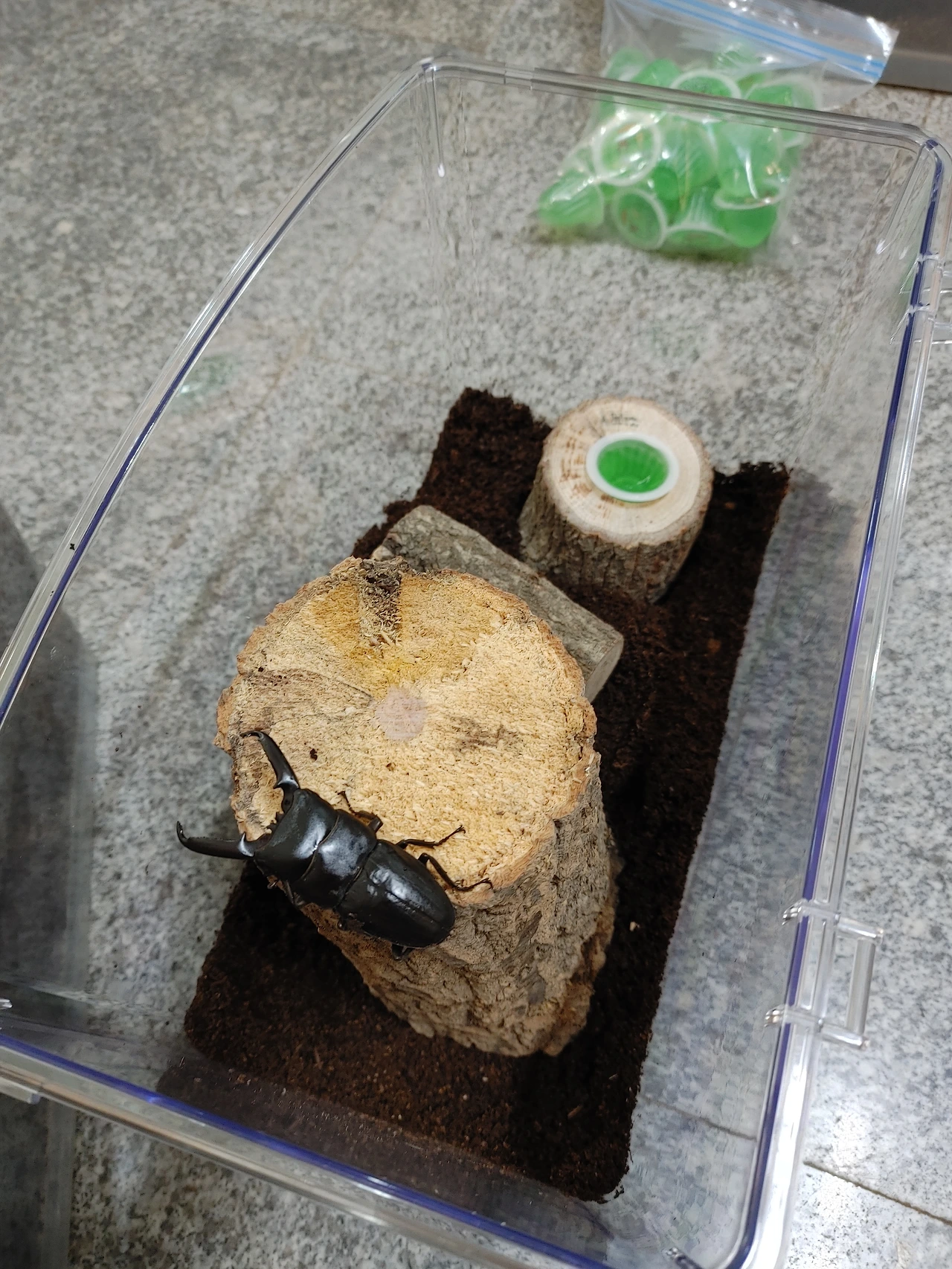 내친김에 넓적사슴벌레 암수 한쌍도 분양받았다. 성체 넓적사슴벌레를 분양해야 1년 동안 알을 낳고 애벌레가 번데기 되어 다시 성체가 되는 과정을 관찰할 수 있다고 했다. 놀라운 것은 도마뱀 수명이다. 잘 키우면 17년을 산단다. 생각보다 오래 살아서 놀랐다. 진짜 강아지나 고양이 키우는 것만큼 애정을 쏟아야 했다.