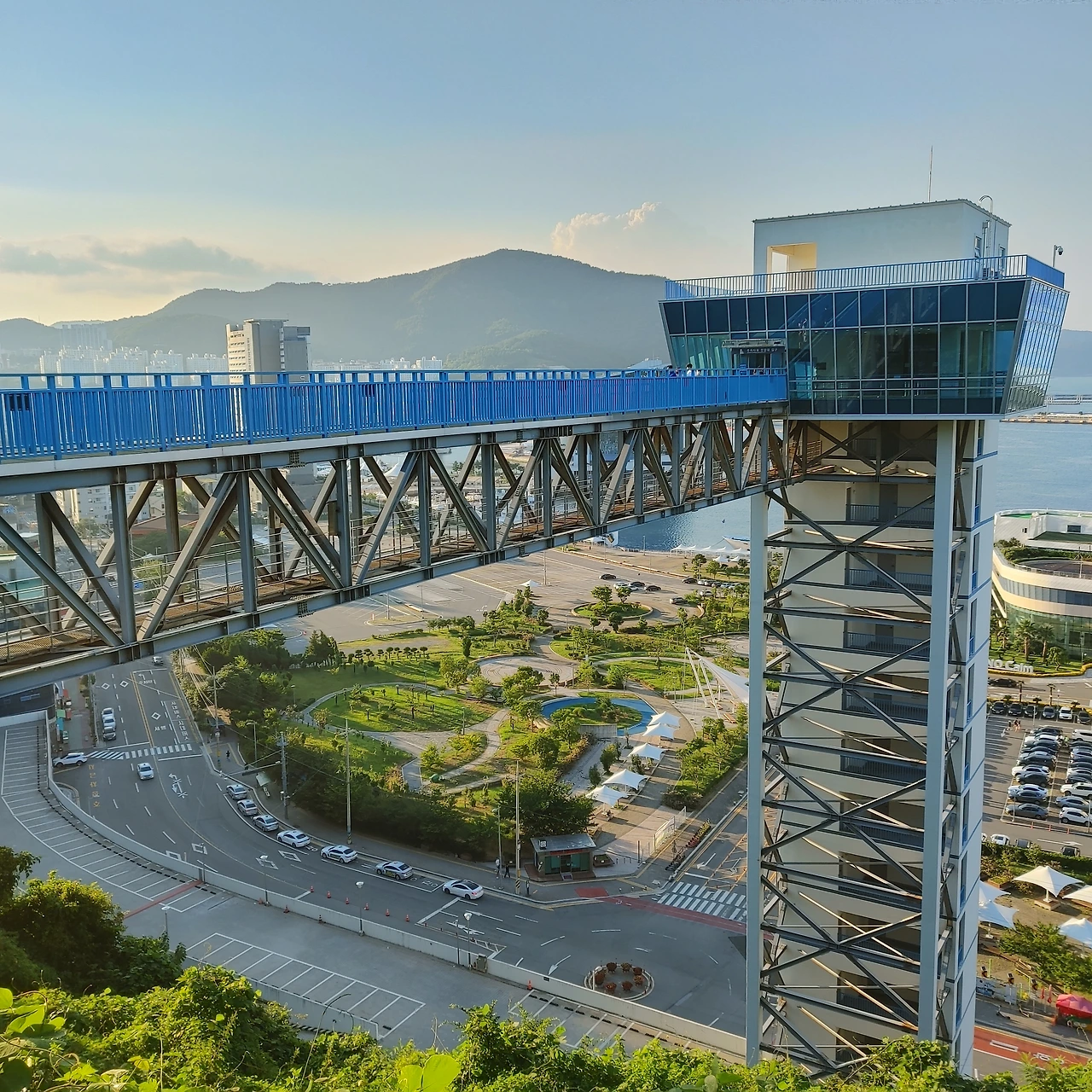숙소에서 쉬다가 케이블카를 타려고 나섰다. 일몰과 돌산대교 야경을 보려고 자산 공원 쪽 탑승장으로 향했다. 케이블카 탑승장과 이어진 다리를 걷는데 높이에 아찔했다. 심장이 벌렁벌렁 발바닥이 찌릿거렸다. 아들은 다리 난간을 붙잡고 다리 밑을 서슴없이 내려다봤다. 혼자 어찌나 긴장되던지 지금 생각해도 아찔하다.
