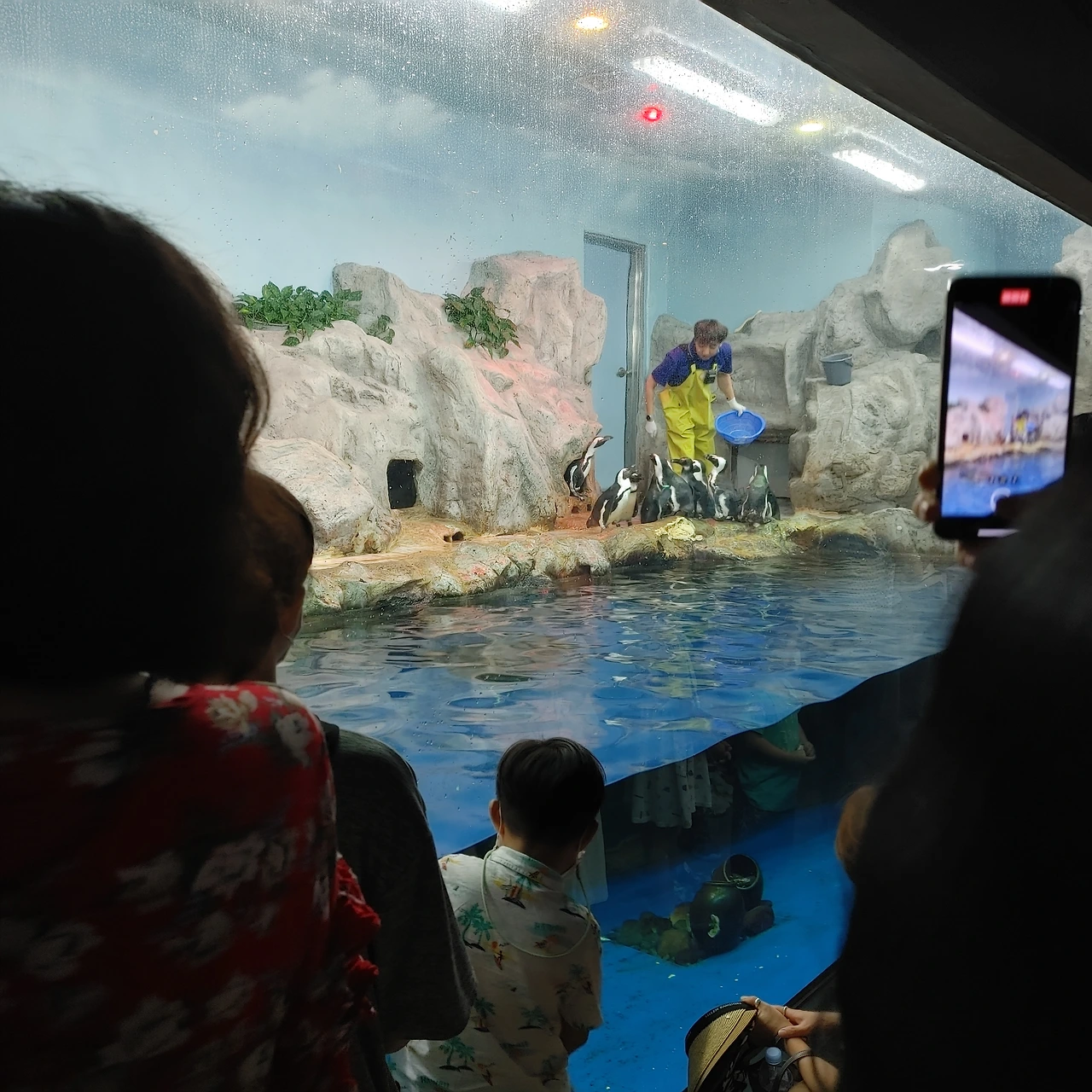 연신 아들의 감탄사가 터져 나왔다. '우와! 우와! 신기하다.' 한참 동안 주위에 머물며 흰돌고래 곁을 떠나지 않았다. 눈을 꿈벅거리며 누워서 헤엄치는 바다사자와 먹이를 먹으로 사육사 뒤를 졸졸 따라다니는 펭귄을 볼 때 좋아했다. 국대 최대 규모로 자랑할 만했다.
