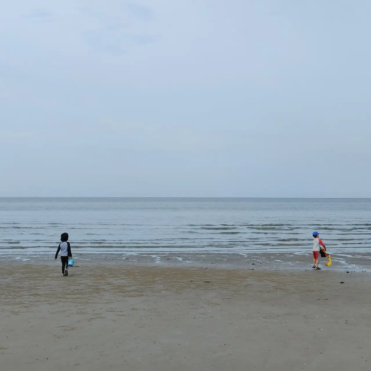 계획대로 흘러가지 않았다. 원래 모래 언덕에서 썰매를 타다가 모래 놀이를 하려고 했다. 아이들은 바다에 홀린 듯 뛰어 들어갔다. 결국 물놀이를 하고 말았다. 바다에 와서 물놀이를 안 하려고 했으니... 이거 참 이럴 줄 알았으면 구명조끼와 튜브를 가져왔을 걸 물놀이에 신난 아이들을 보고 후회했다.