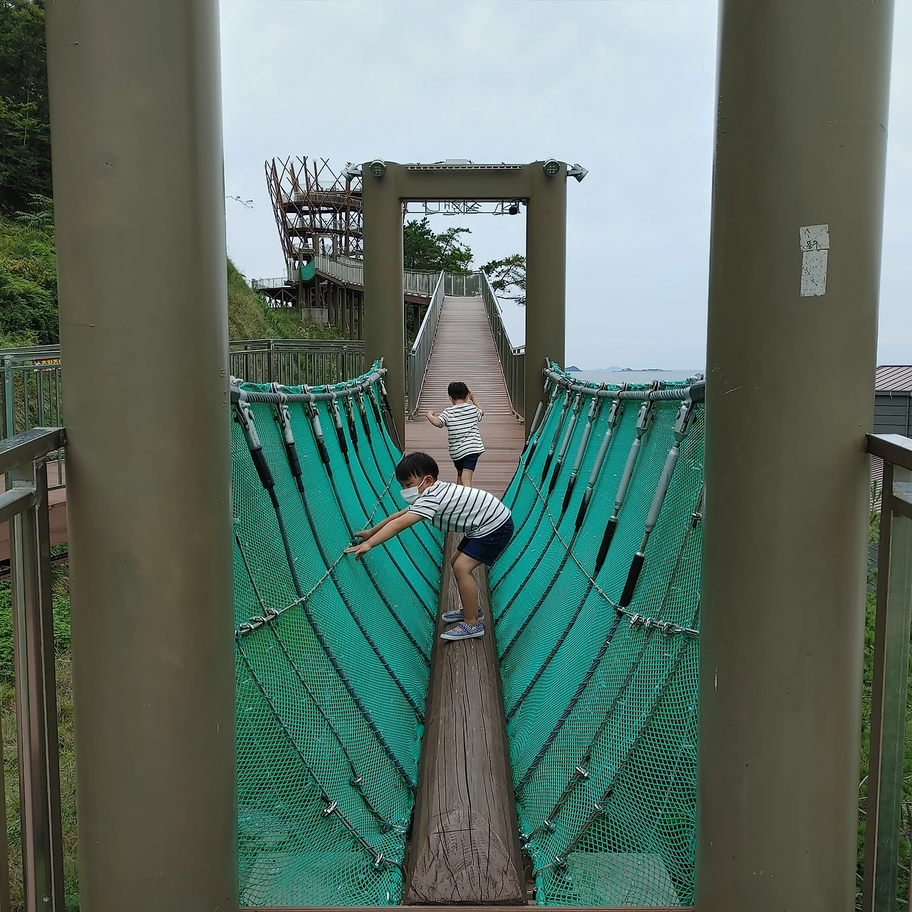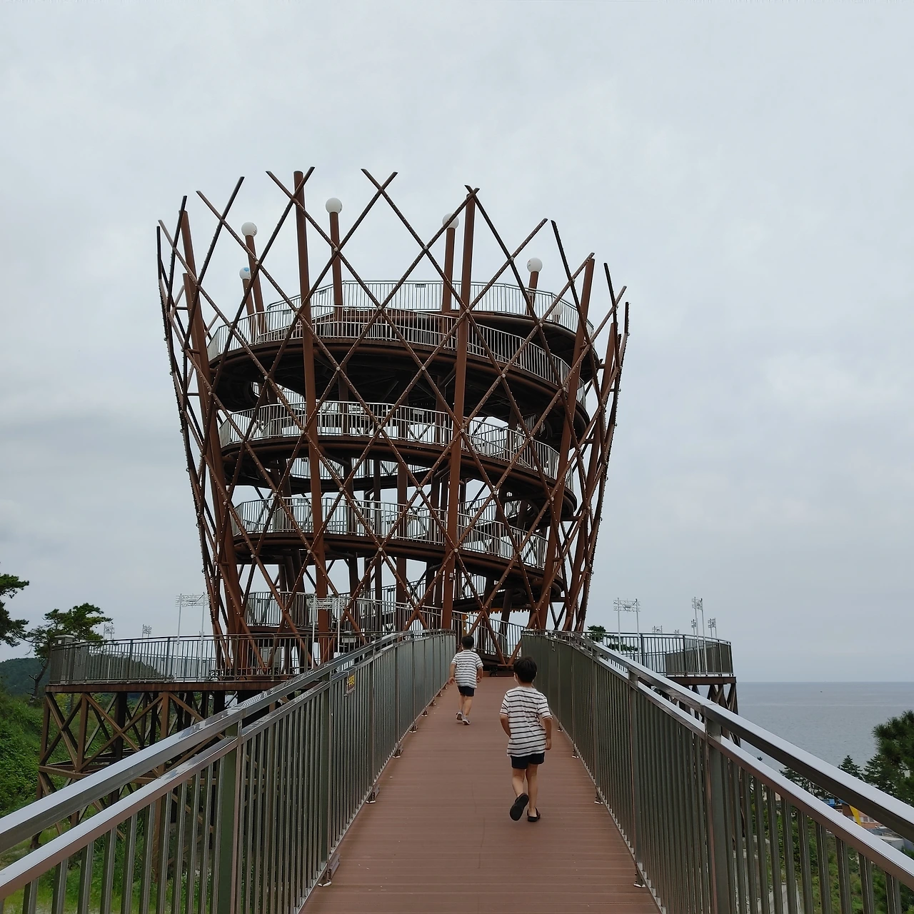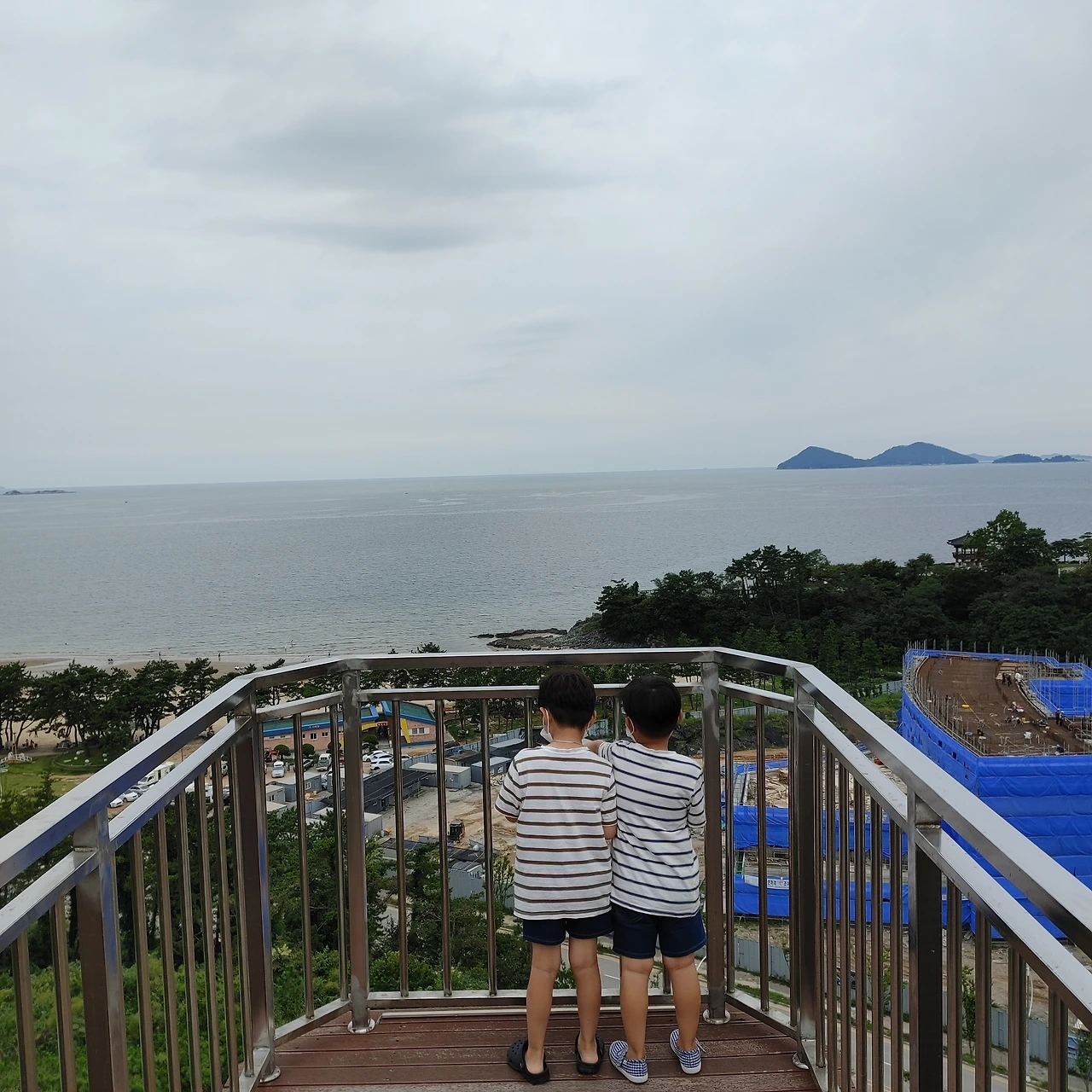 뭔지 모르게 그냥 집에 가기 아쉬웠다. 해수욕장 옆에 있는 전망대가 눈에 들어왔다. 생각해보면 지금까지 변산 해수욕장에는 갔어도 전망대는 가지 않았다. 시간도 때울 겸 아이들을 데리고 전망대에 올랐다. 아찔한 높이었지만 씩씩하게 걷는 두 녀석들. 전망대에서 내려다보이는 해수욕장을 한참 동안 바라봤다.