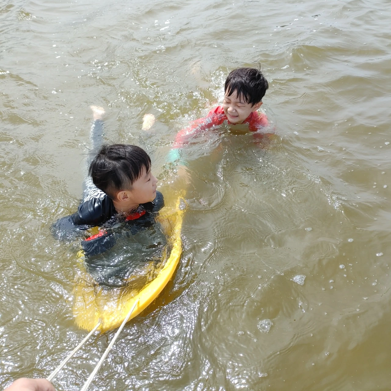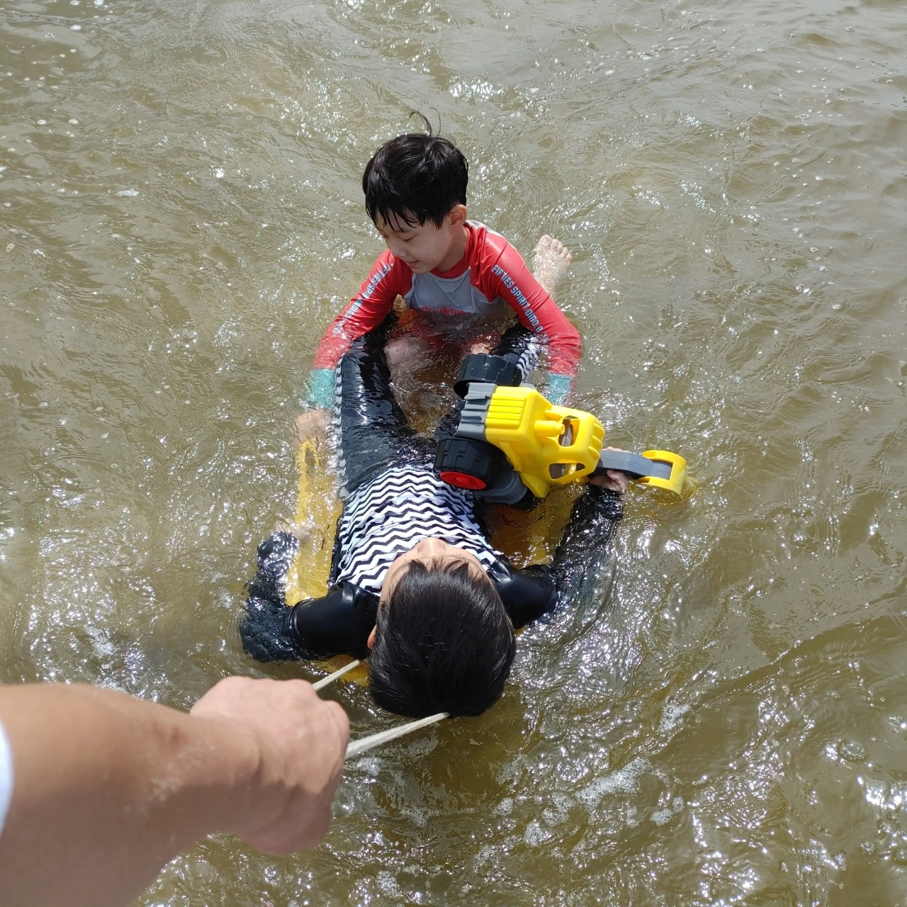 3시간째 놀고 있다. 지치지 않는 아이들의 체력에 혀를 내둘렀다. 놀고 있는 모습을 보니 몇 시간은 더 있을 거 같아 불안했다. '아빠 아빠' 쉴틈을 주지 않고 썰매를 끌어달라고 난리다. 서핑을 즐기는 아이 모습 뒤에는 힘겹게 보드를 끄는 아빠의 손이 숨어있다. 일렁이는 파도에 2시간 더 놀았다.
