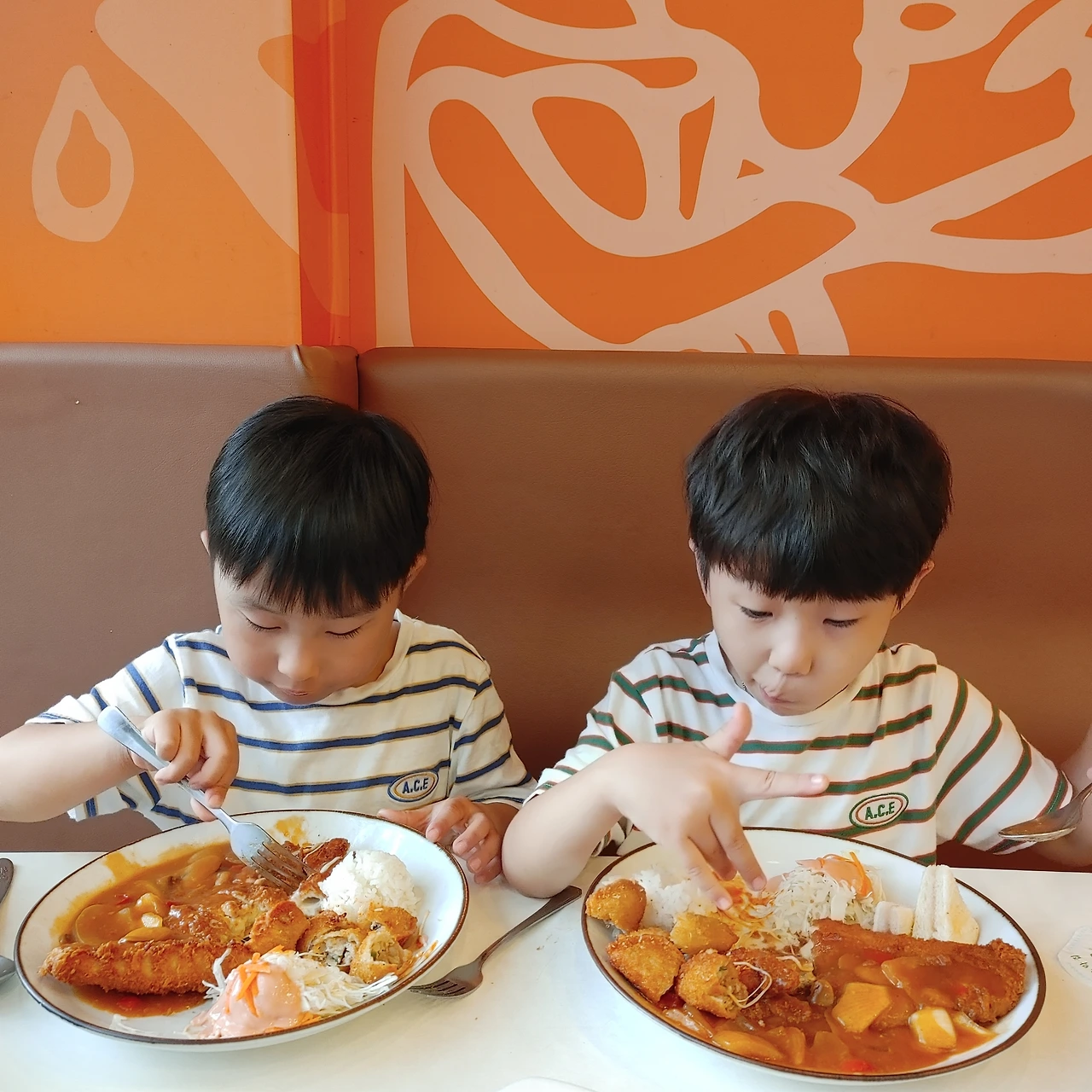 1시간 30분을 놀고 근처 [신포우리만두]에 가서 저녁을 먹었다. 나란히 앉아 돈가스를 먹던 아이들의 모습이 어찌나 귀엽던지 게눈 감추듯 접시를 싹싹 비웠다. 이만하면 바로 집에 갈 만도 한데 아니었다.