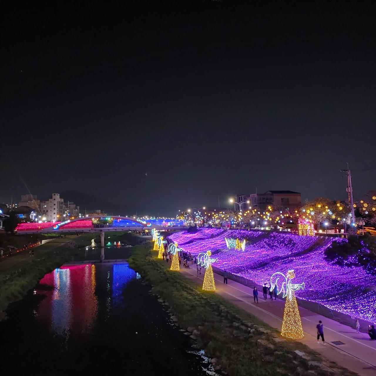 그새 어둑어둑 땅거미가 졌다. 차를 타고 3분 거리인 빛 축제를 하고 있는 정읍천 달하다리로 갔다.