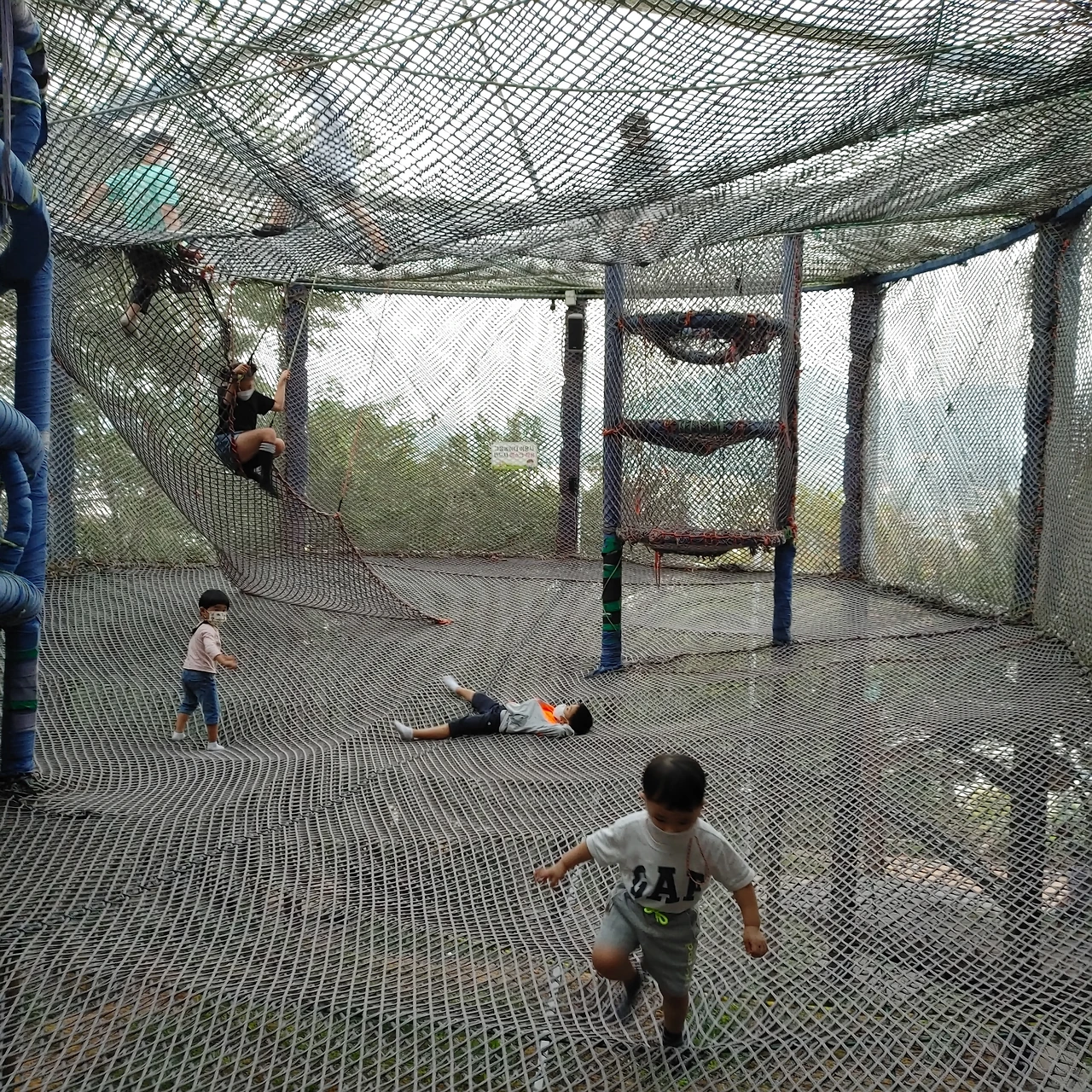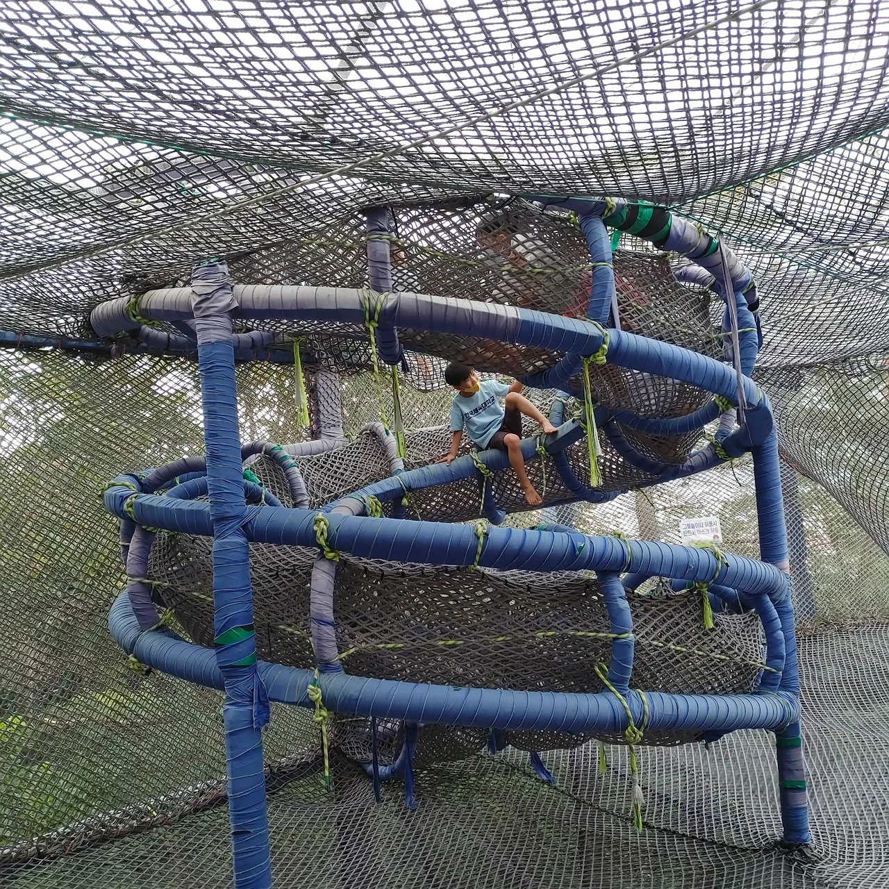 그물 놀이터에서 둘째의 진면목을 볼 수 있었다. 다섯 살 때 무서워서 그물에 올라가지 못했던 첫째와 달리 세 살 둘째는 처음에는 망설이더니 성큼성큼 거침없이 그물에 올라섰다. 겁이 없는 건지 생각이 없는 건지 아찔한 높이까지 서슴없이 올라 형 누나들과 섞여 신나게 놀았다. 형이 하면 무조건 따라 하는 탓에 형들을 따라 구멍으로 내려온다고 키도 안 닿는데 매달려 있다가 결국 아래로 떨어졌다. 나만 식겁, 나보다 더 놀랐을 둘째는 울지도 않았다. 참 너란 녀석, 둘째는 알다가도 모르겠다.