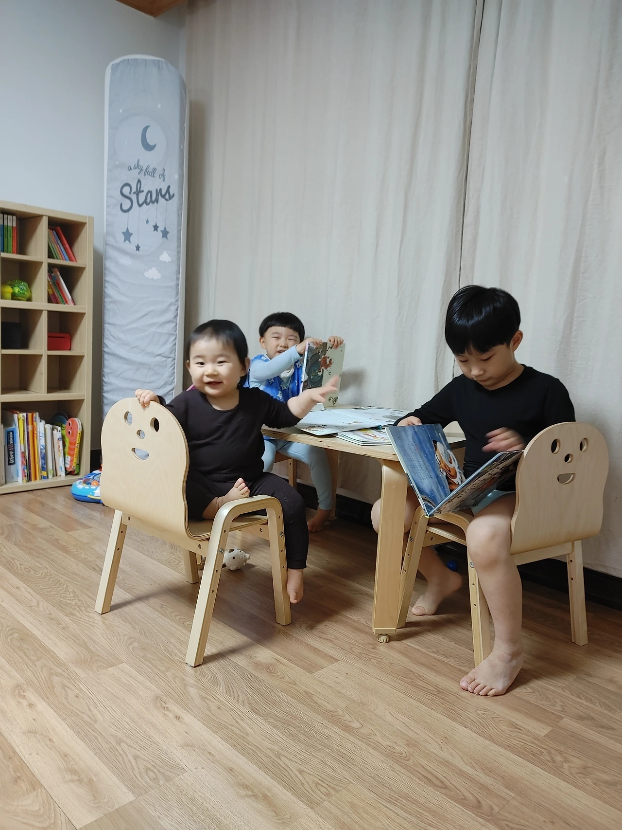 셋째에게 "이쁜 짓"이라고 말하면 검지 손가락으로 귀를 막는다. 종종 장모님에게 아이를 맡기곤 하는데 장모님이 개인기를 가르친 것이다. 기어 다니던 아이가 두 다리로만 떡 버티고 섰을 때도, 걸음마도 며칠 장모님이 돌본 뒤로 떼었다. 손가락으로 귀를 막고 초롱초롱한 눈으로 쳐다보는데 심장이 터질지도.