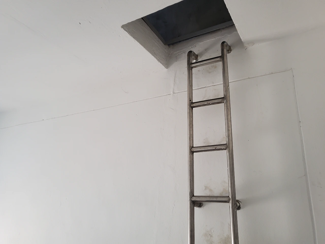 5층에만 있는 물탱크 사다리. 저 안에 눈치게임 모터가 있다. 모터 돌아가는 요란한 소리가 계단을 채우면 5층에서 물을 쓰고 있는 것이다.