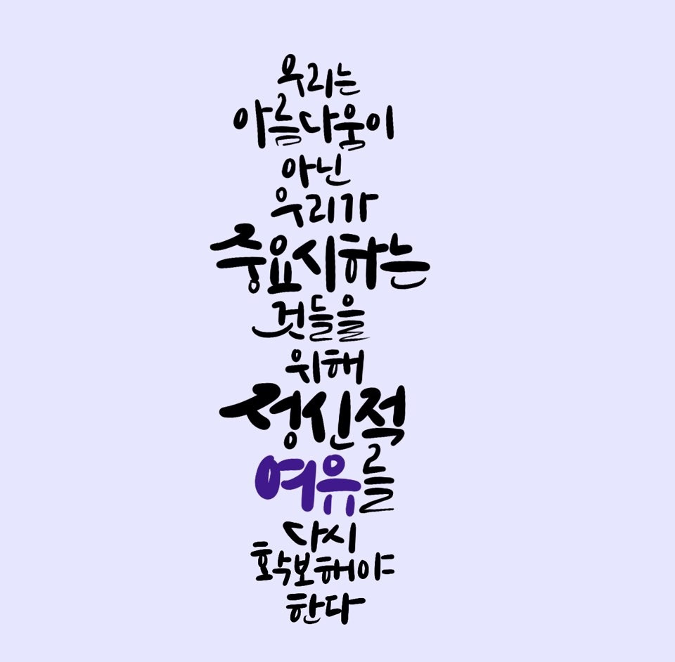 솔직하게 말하면 쿨하게 다른 사람들에게 비춰지는 나의 모습을 절대 신경쓰지 않을 것이라곤 생각치 않는다. 외모강박이 많이 줄어든 요즘에도 가끔 예전으로 돌아가려는 습성이 나오기 때문이다. 하지만 아름다움보다 더 중요한 가치에 집중해나가기 위해 지속적으로 노력은 할 것이다.