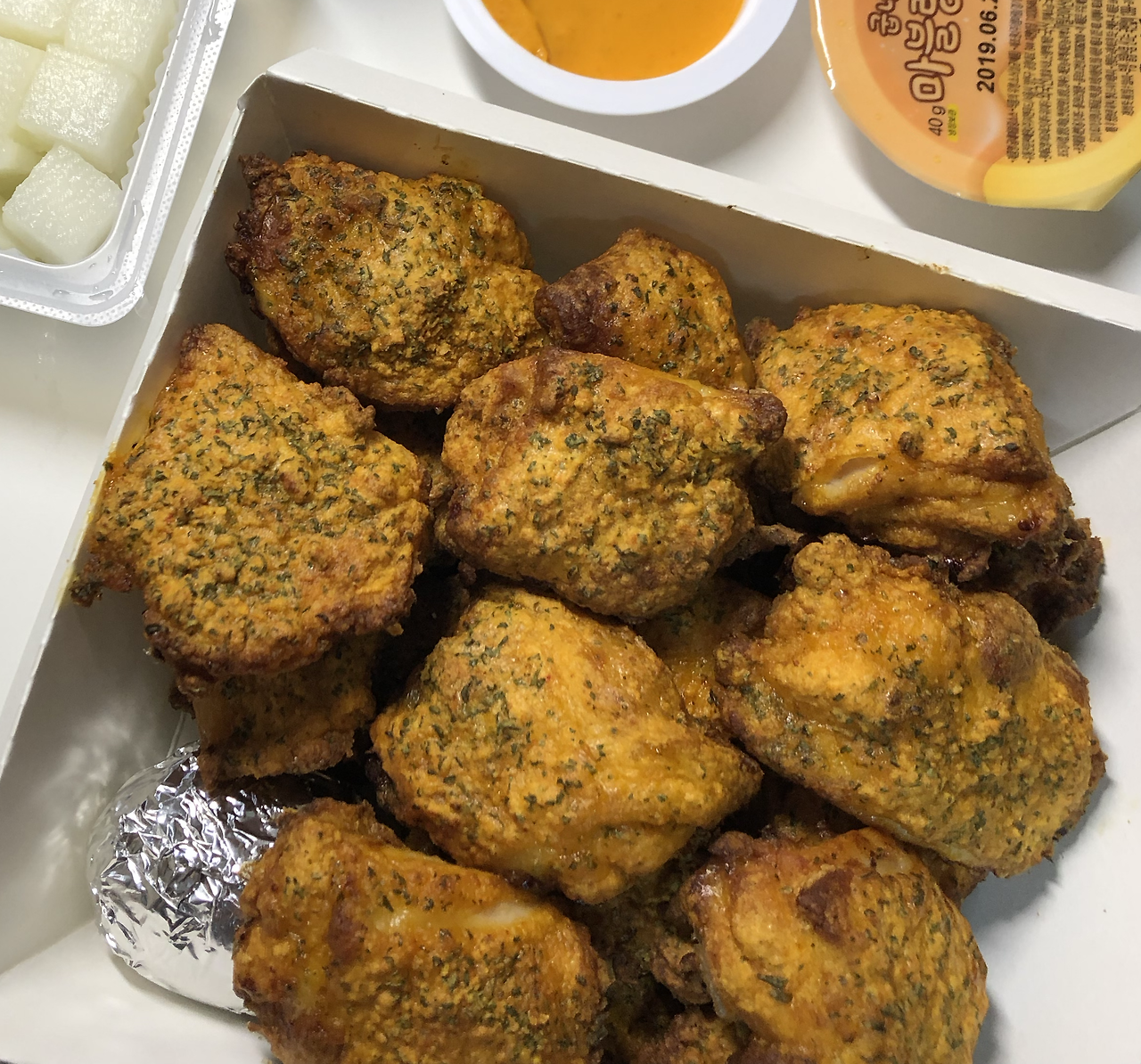 이십 분 뒤에 찾으러 내려갔는데, 처음 보는 남자분과 여자분이 웃으면서 치킨을 건네주셨다. 뭐지, 그 사이에 사장님이 바뀐 건가, 아니겠지 하면서 불안한 마음으로 혹시 사장님이 바뀌셨냐고 여쭤봤다.