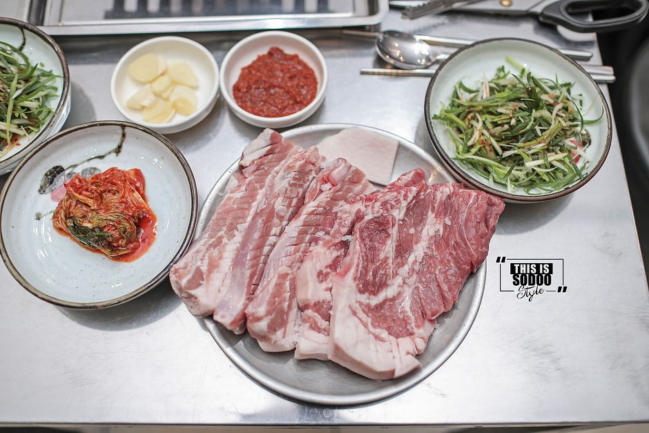다른거 없다. 오로지 흑돼지 아니면 백돼지 둘중하나를 선택할수있도록 되어있고 한접시냐 반접시냐 단순한 주문 시스템만이 있을뿐 별다른 메뉴가 없다. 가격대도 다른곳에 비해서 많이 저렴한편이다.