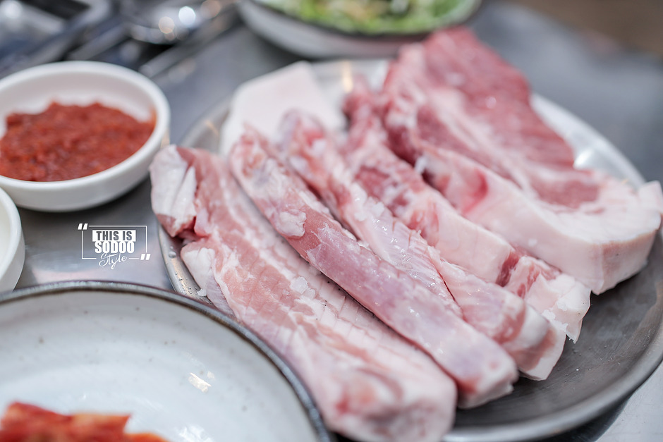 흑돼지를 떠올리면 대부분 살도 시커먼게 아닐까~ 마치 오골계를 볼때처럼 말이지~! 하지만 그 상상은 실물을 보고 나면 일반 돼지고기와 생김새는 크게 다르지 않다는걸 알게된다. 흑돼지는 검은 털때문에 붙은 이름이며 일반 백돼지에 비해서 살이 더 쫄깃하고 고유의 맛이 있기 때문에 많은 사람들로 부터 인기가 있는것이다.