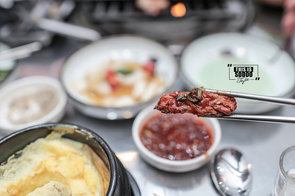 물조절을 상당히 잘한것 같았다. 너무 묽지 않아서 부드러운 계란빵을 먹는것처럼 폭신거리는 식감에 간도 잘 맞춰져있어서 고기를 먹기전에 식전음식으로도 제격이다.