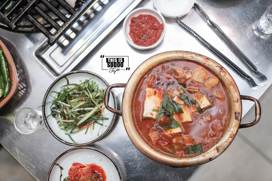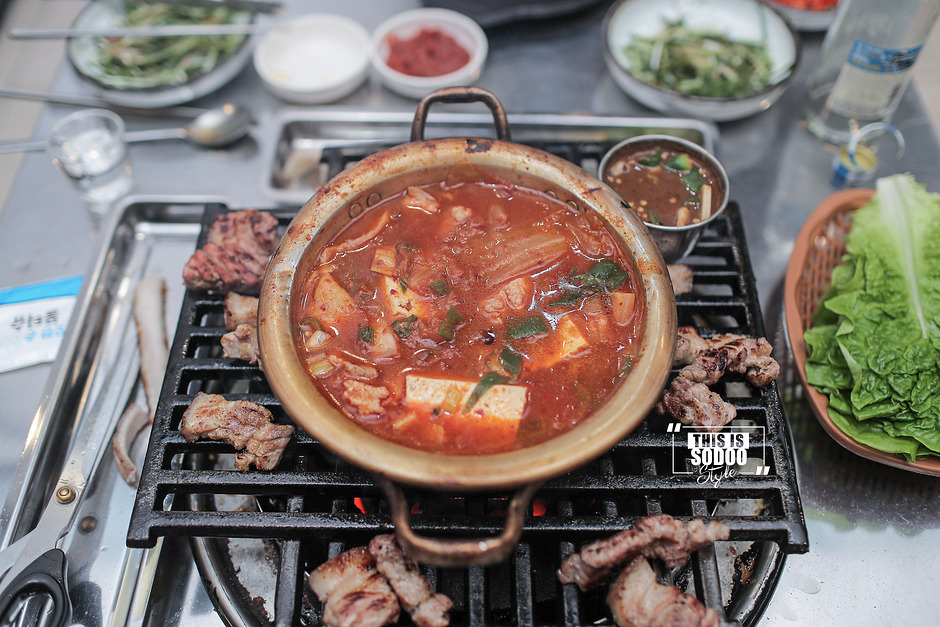 고기를 먹을때 된장찌개 혹은 다른 찌개가 하나 있다면 더욱 맛있게 즐길수가 있다.