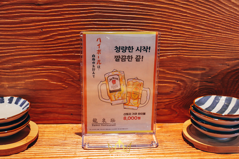 실내가 많이 어두운편이라 들어서기 전까지는 몰랐는데 안으로 들어오니 손님으로 꽉 차있었고 외국인들도 라멘에 소주를!!?? 마시고 있는 진풍경이 펼쳐졌다. 관광객들로 몰리는 지역인만큼 외국인들도 현지식의 느낌을 맛보고 싶었는지 일식 라멘과 본인들에겐 양주처럼 느껴질 소주를 같이 마시는 풍경이 재밌기도 했다.