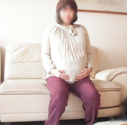 집에서 찍은 33주 때 사진-배가 제법 많이 나왔다.