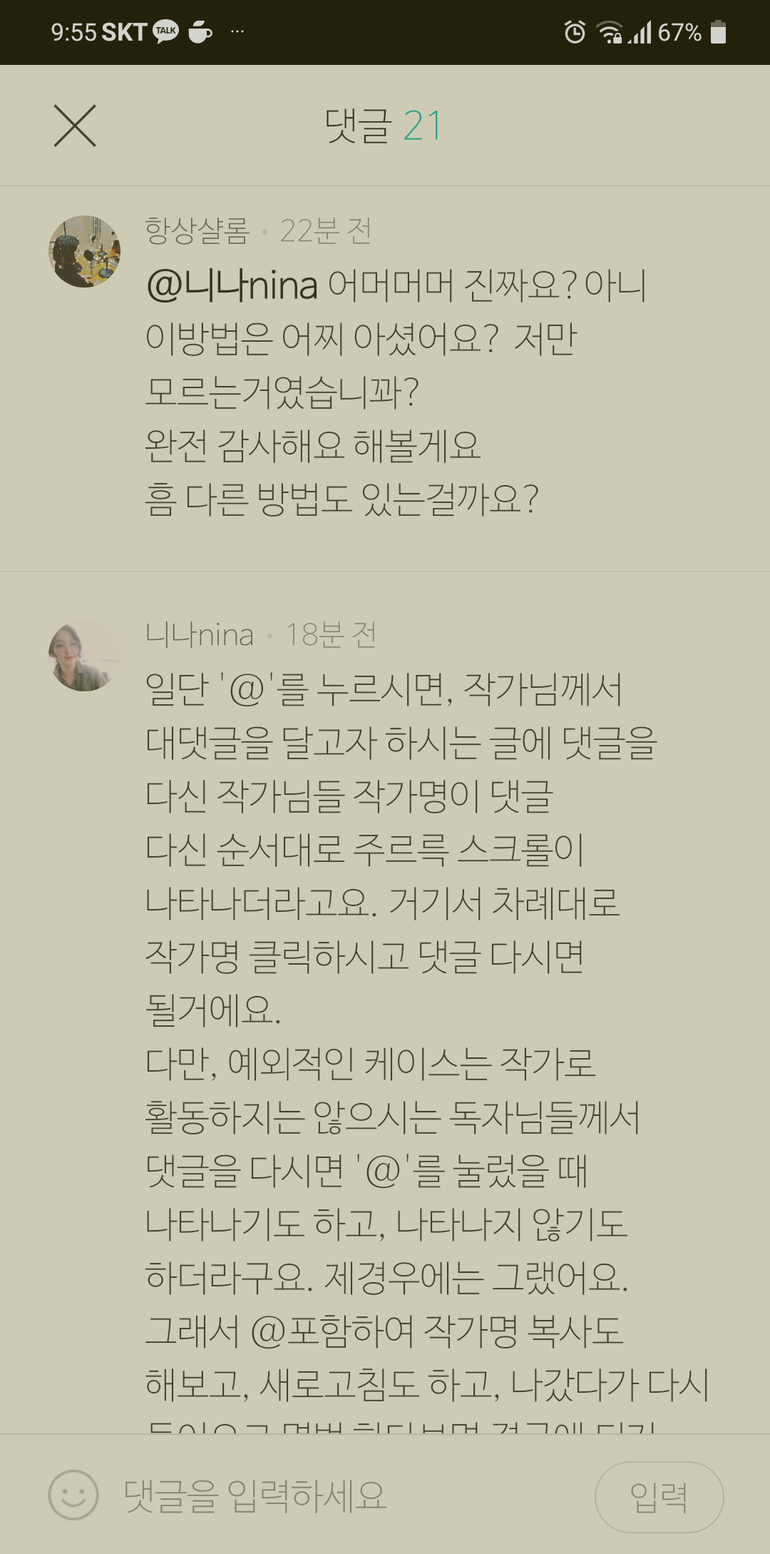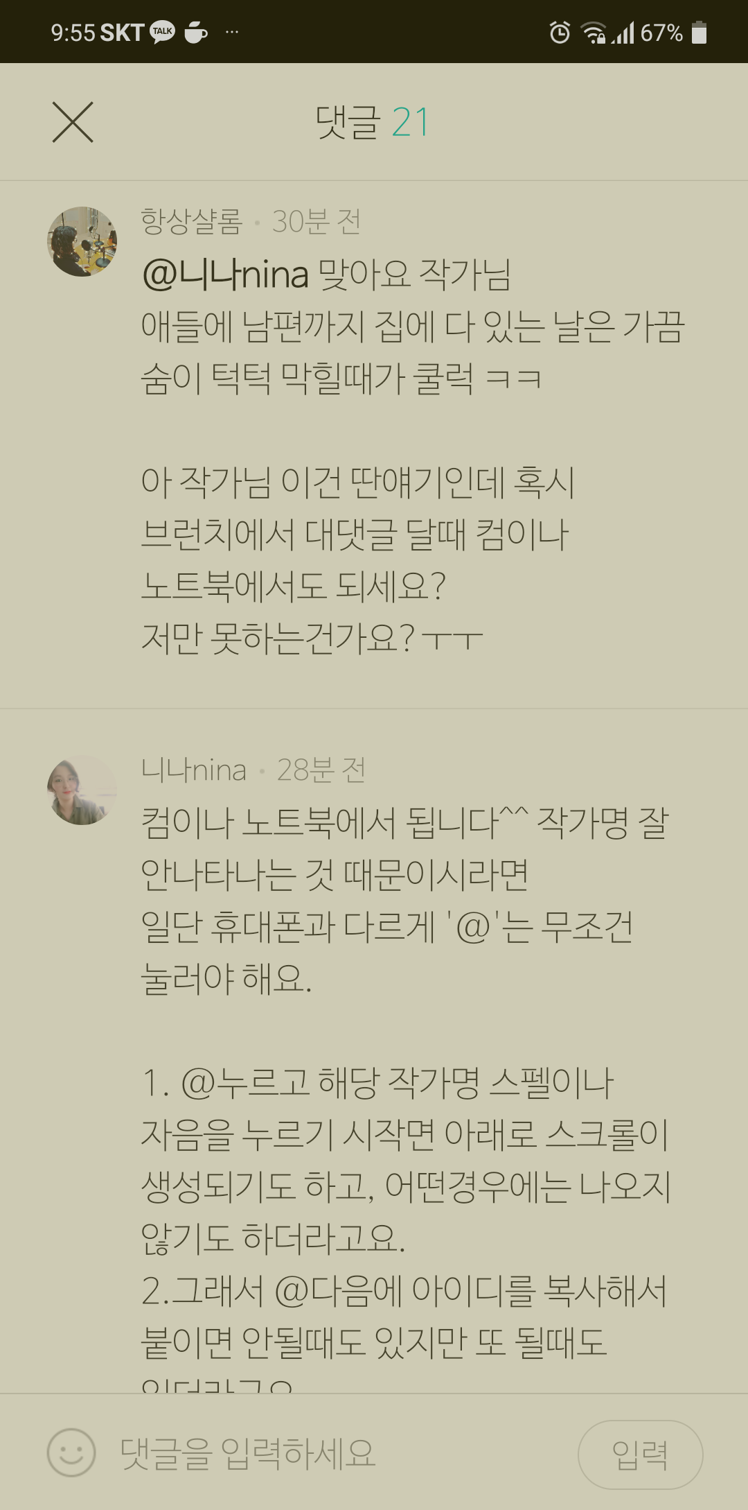 브런치 대댓글 쓰는 방법 저만 몰랐던 건가요?